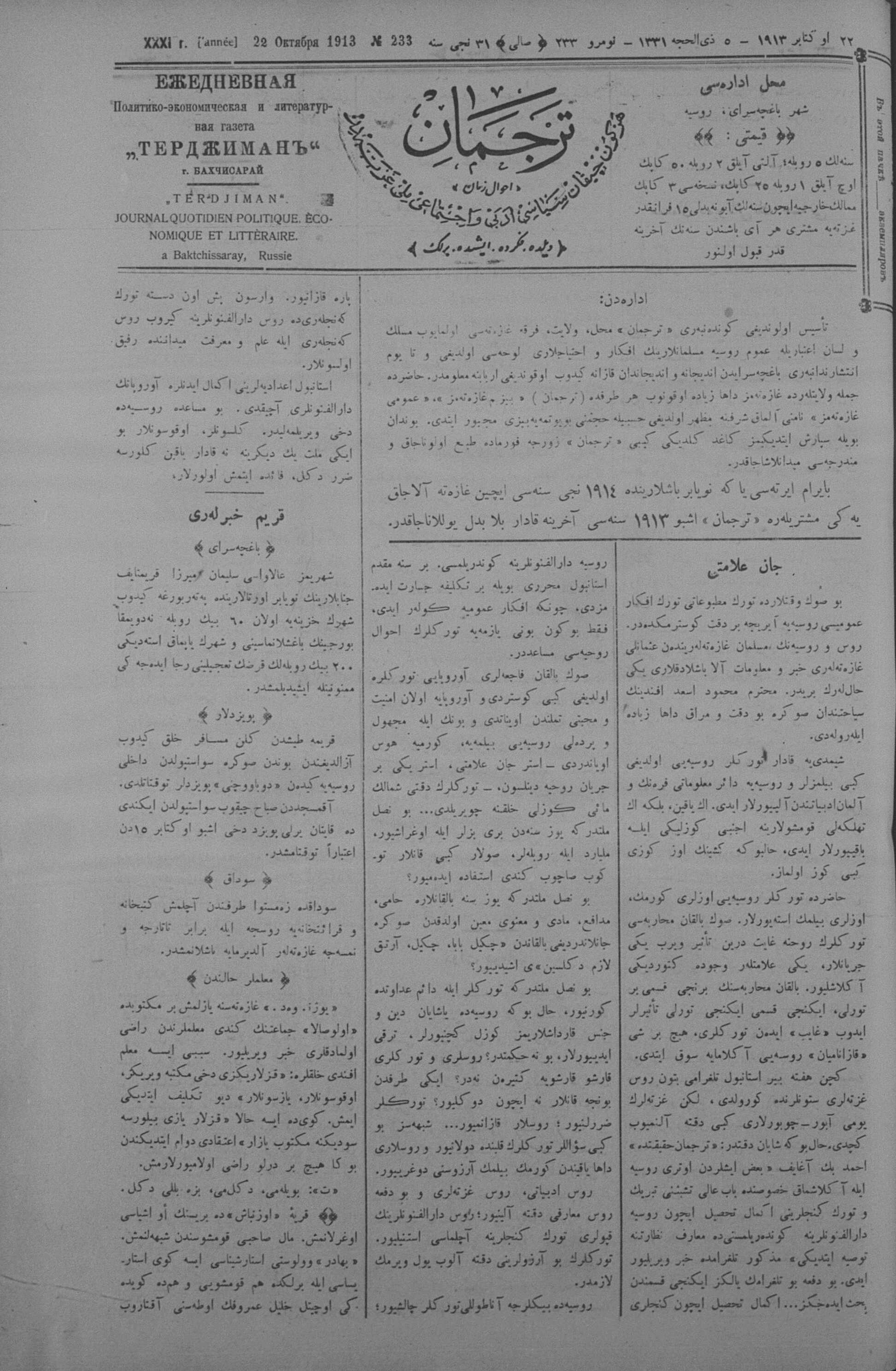 Turkish-Russian newspaper published in Crimea by İsmail Gaspıralı.