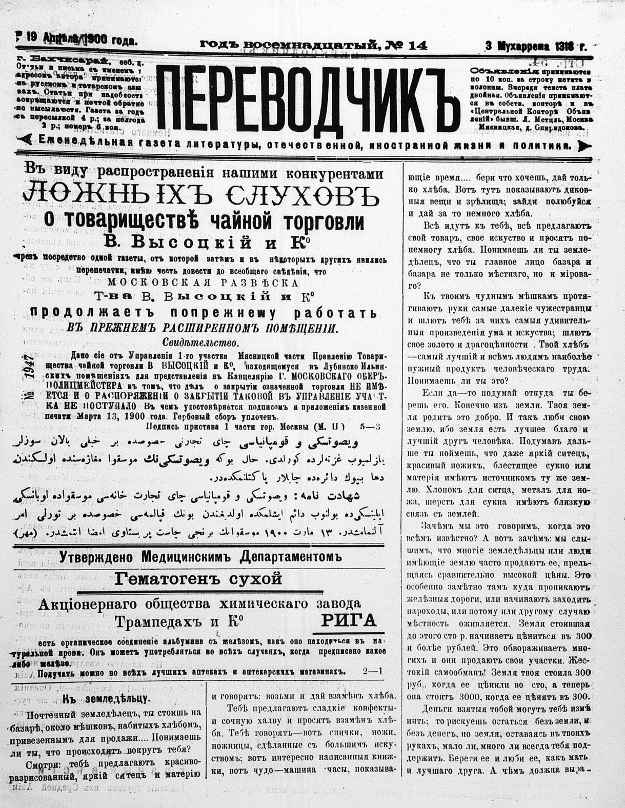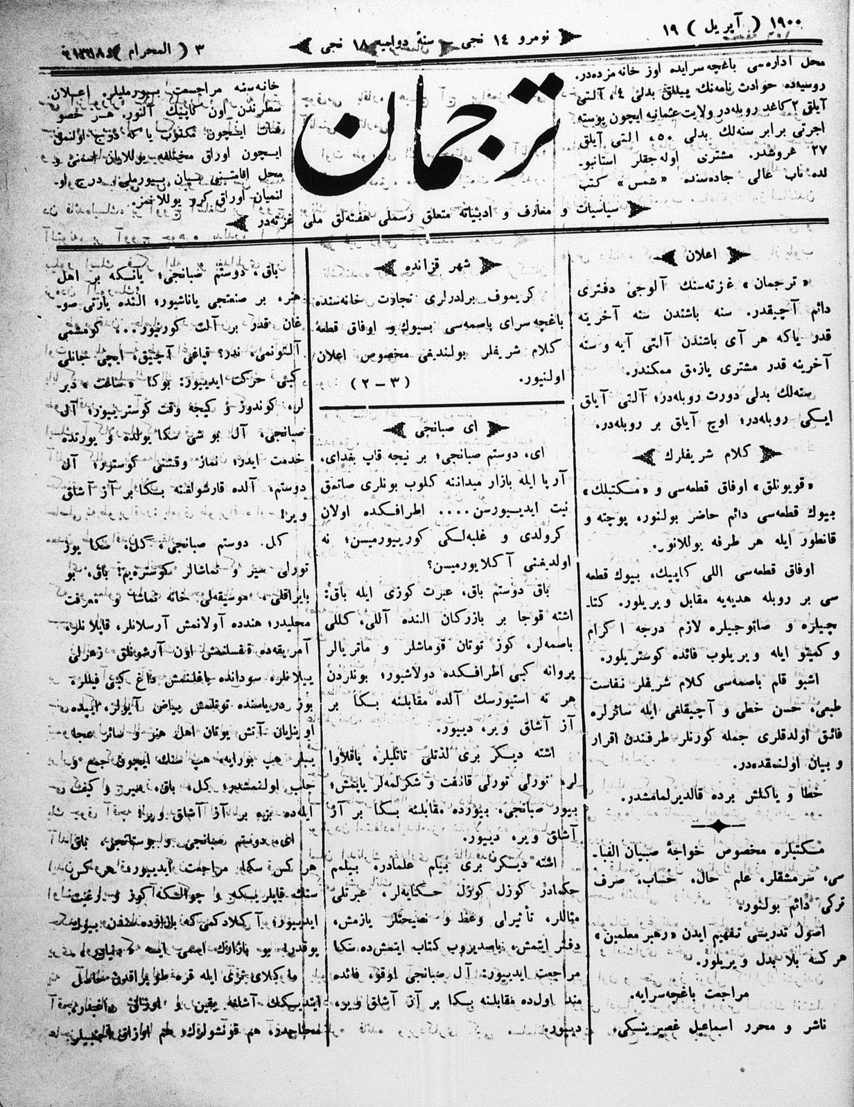 Tercüman, 19 April 1900 Year 18 No 14