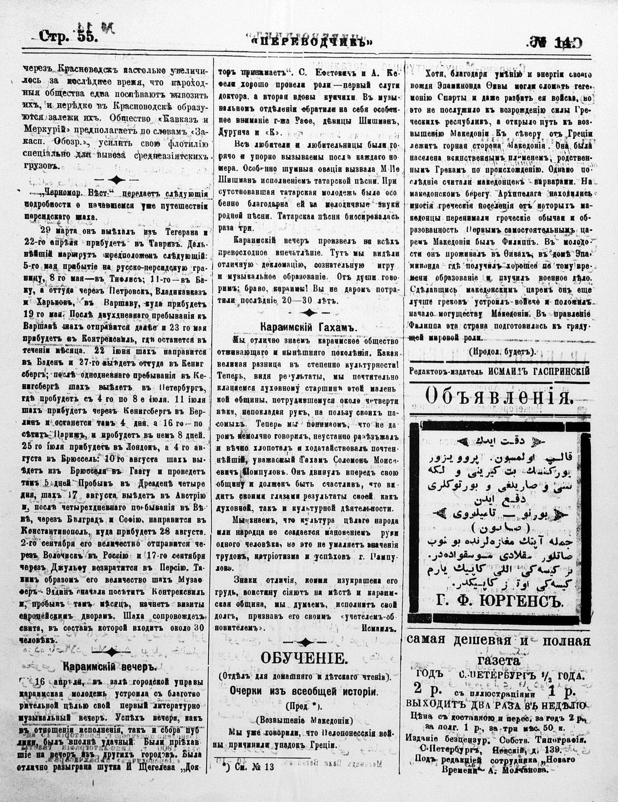 Turkish-Russian newspaper published in Crimea by İsmail Gaspıralı.