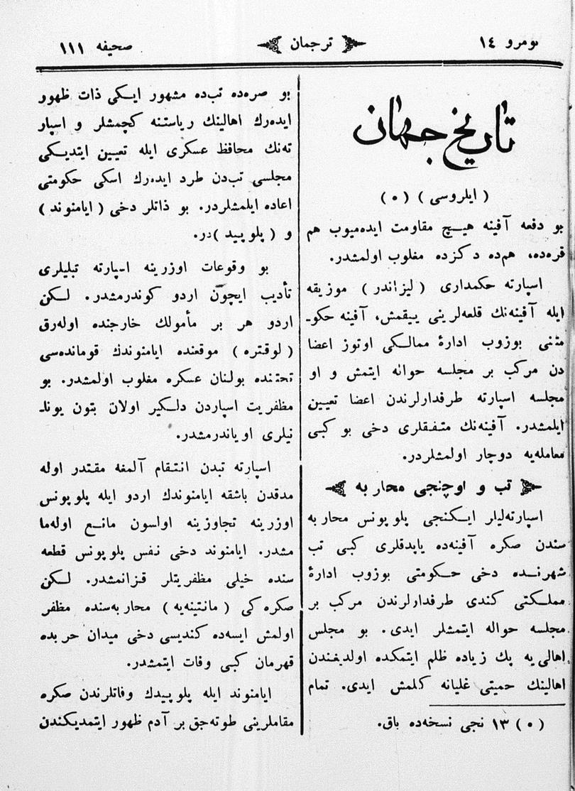 Different spellings of Tercüman: Terdzhiman, Terjuman, Perevodçik and Terjiman.