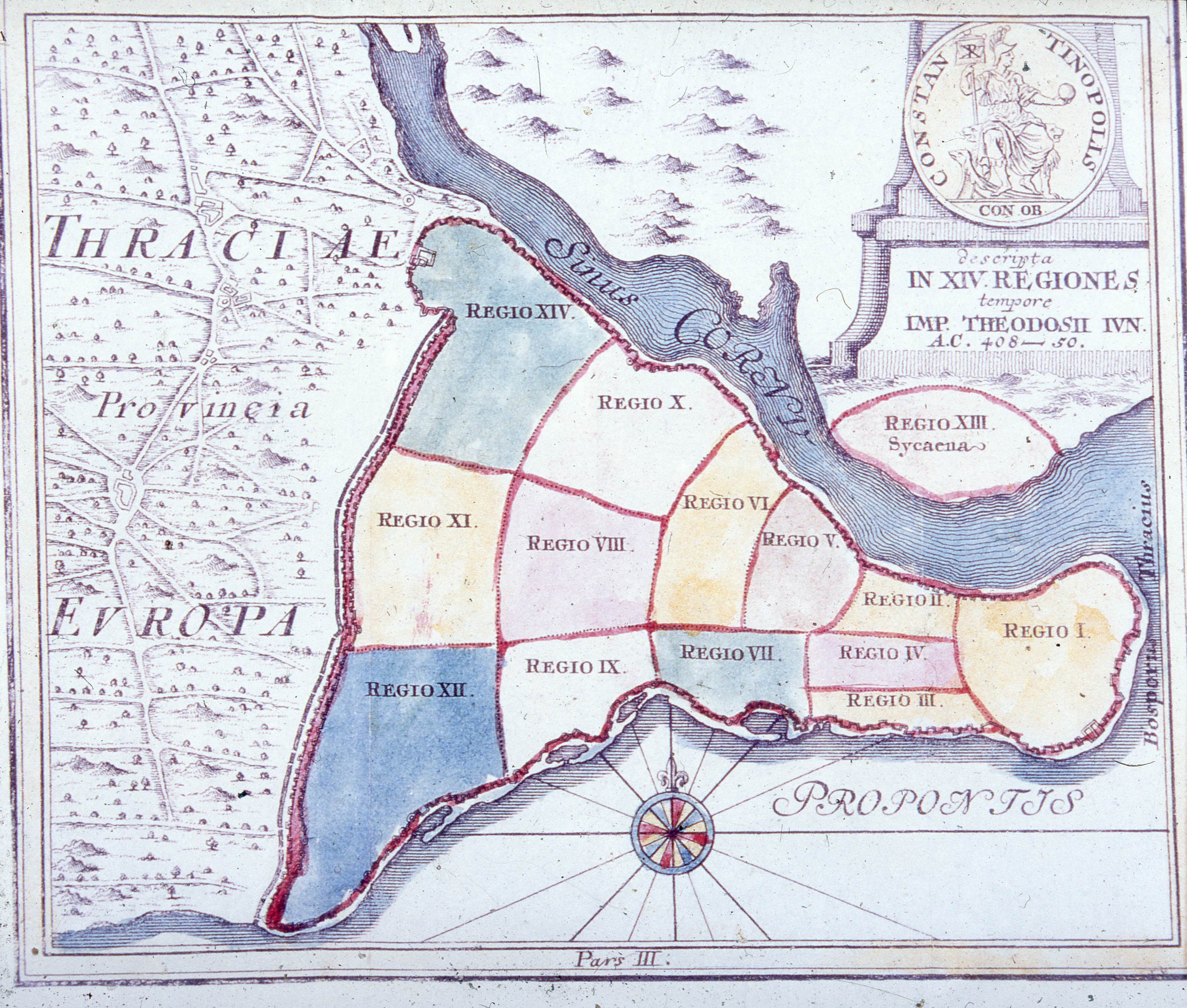 Fourteen districts of İstanbul (Emp. Theodosius Era, 408-450) drawn by Christoph Weigel in 1720