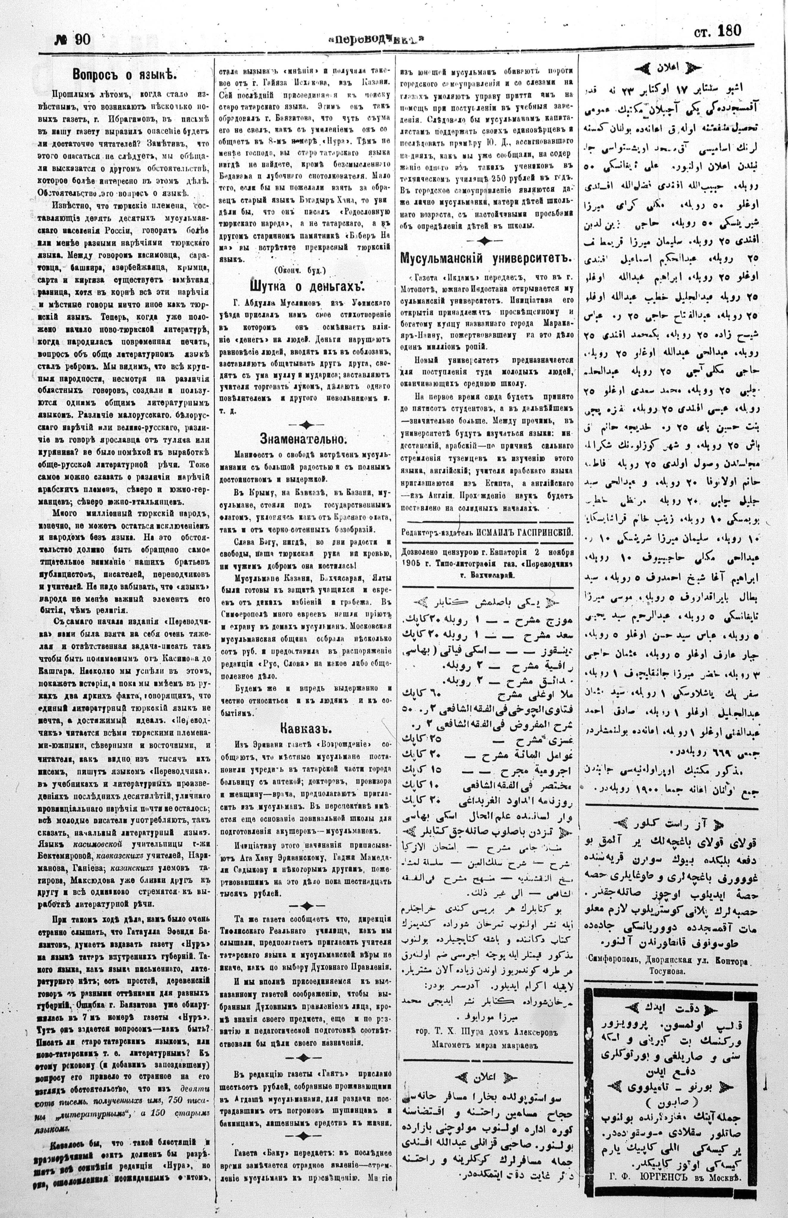 Turkish-Russian newspaper published in Crimea by İsmail Gaspıralı.