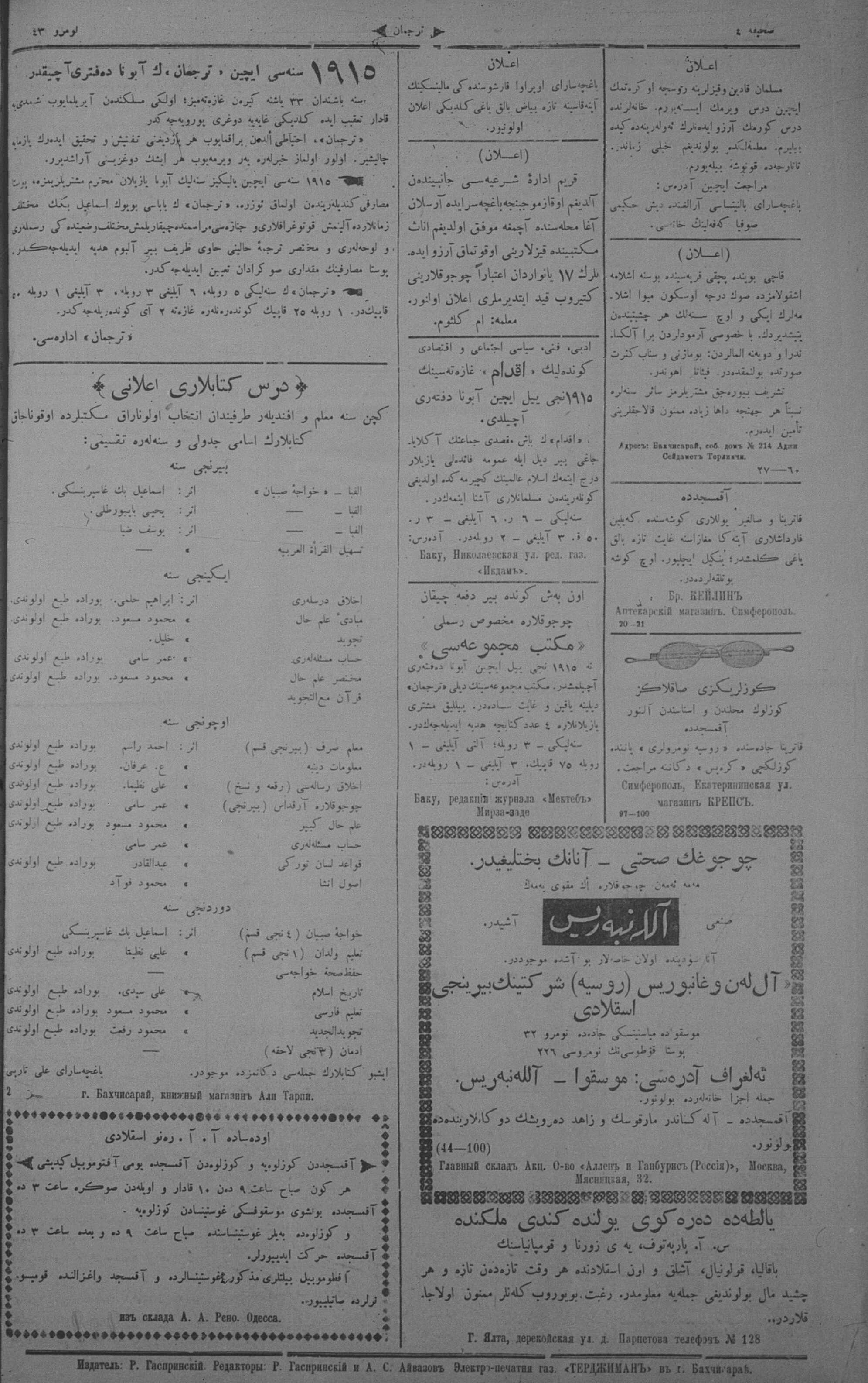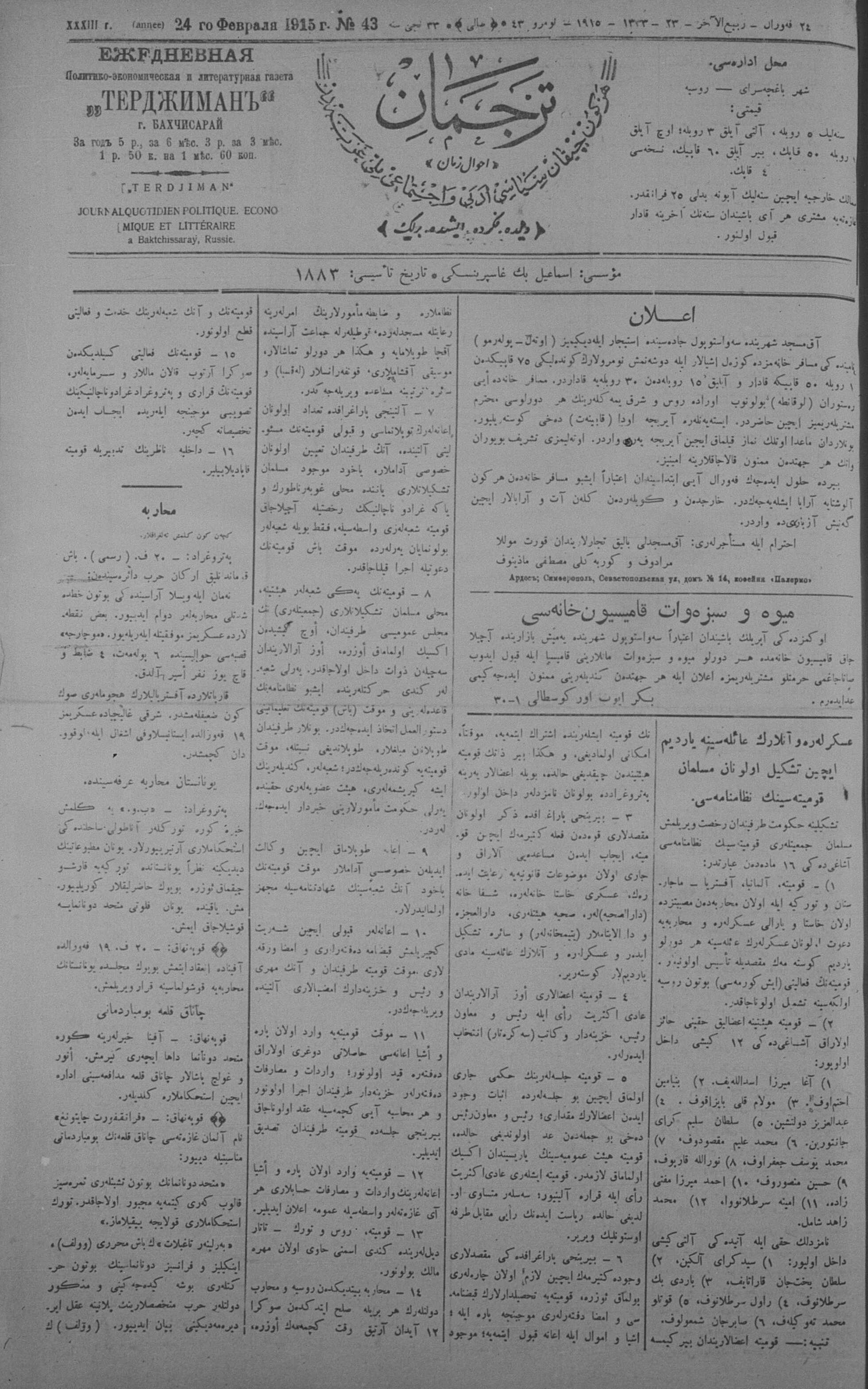 Tercüman, 24 February 1915 Year 33 No 43