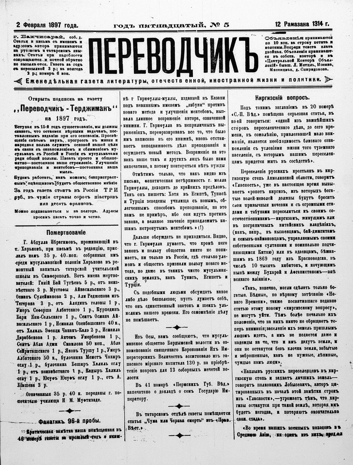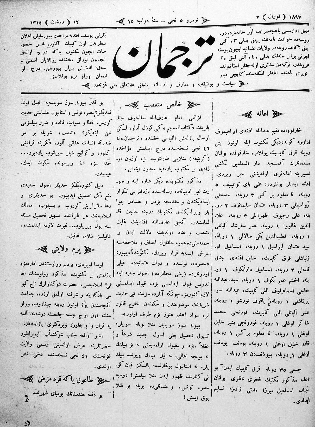Tercüman, 02 February 1897 Year 15 No 5