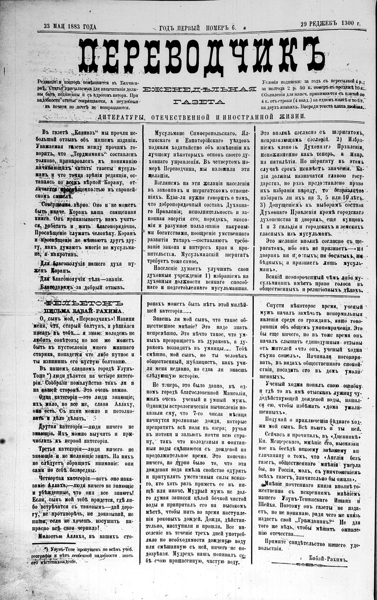 Tercüman, 23 May 1883 Year 1 No 6