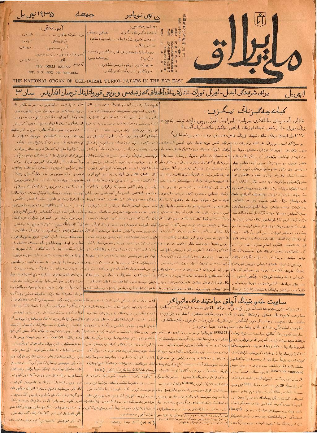 The Milli Bayrak newspaper was written in Tatar with Arabic script.