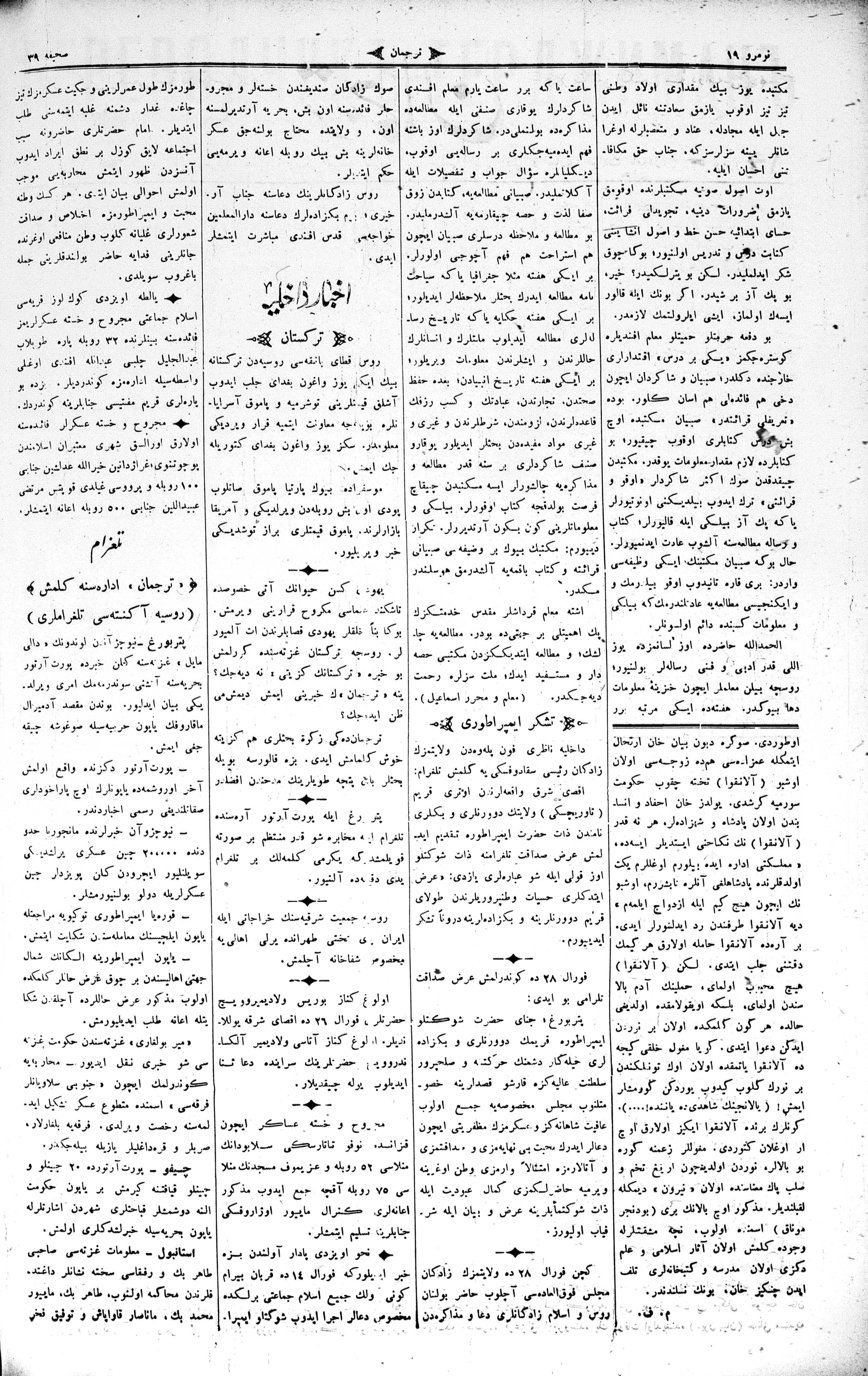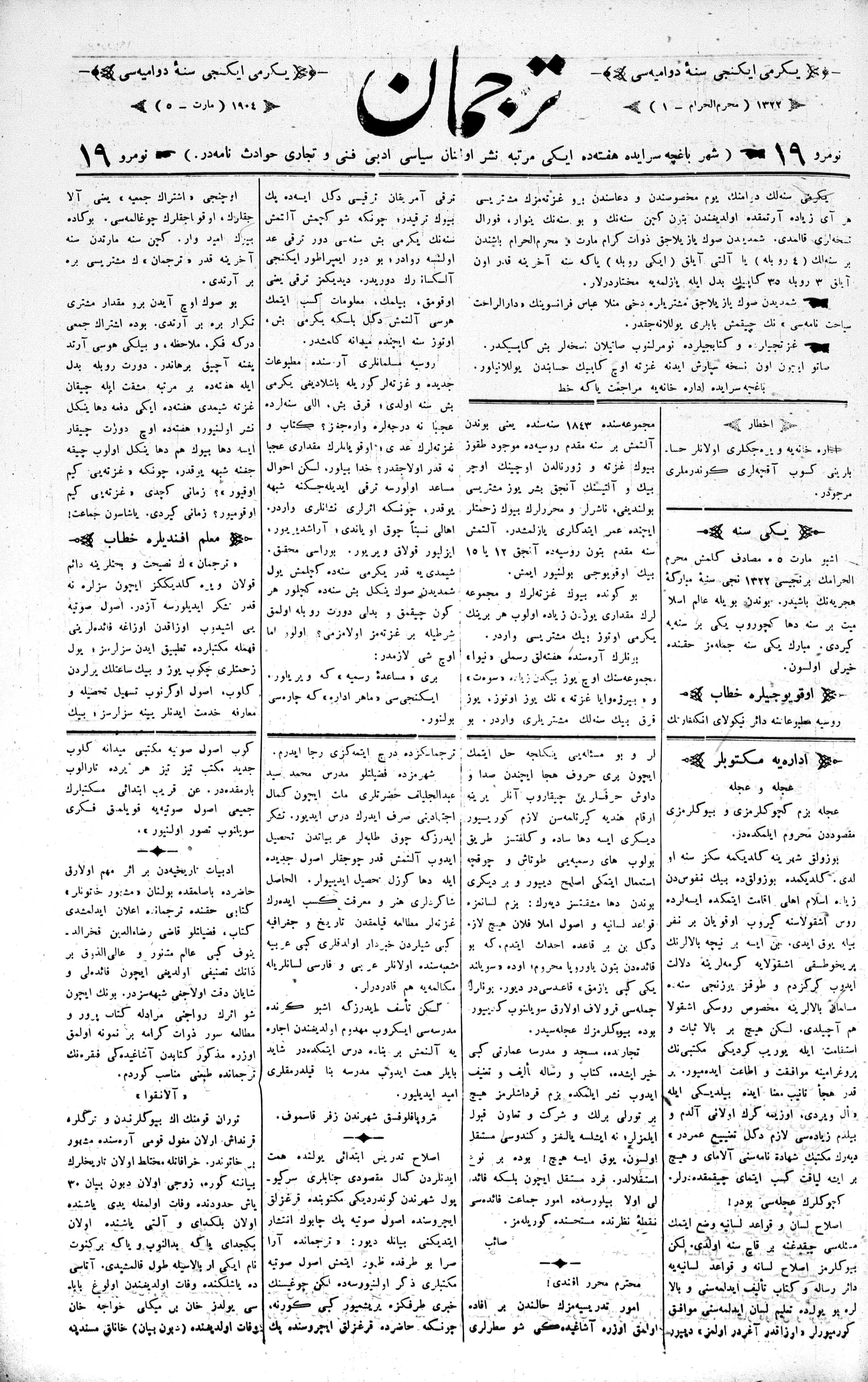 The name of the newspaper changed to Tercüman-ı Ahval-i Zaman in 1905. In 1909, it started to be published under its first name, Tercüman.