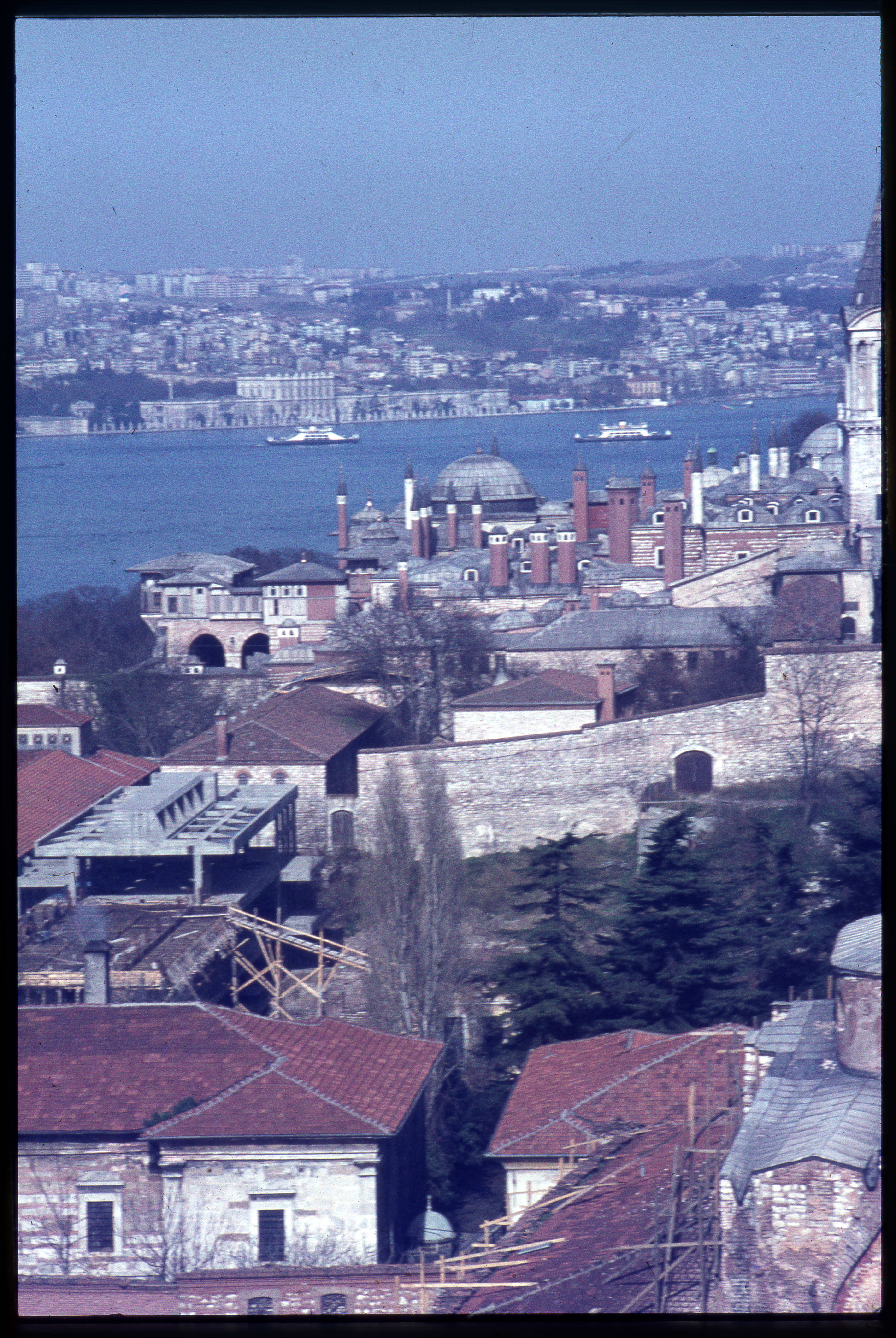 İstanbul-Ayasofya Camii'nin kubbesinden Topkapı Sarayı'nın Harem kısmı ile Dolmabahçe Sarayı