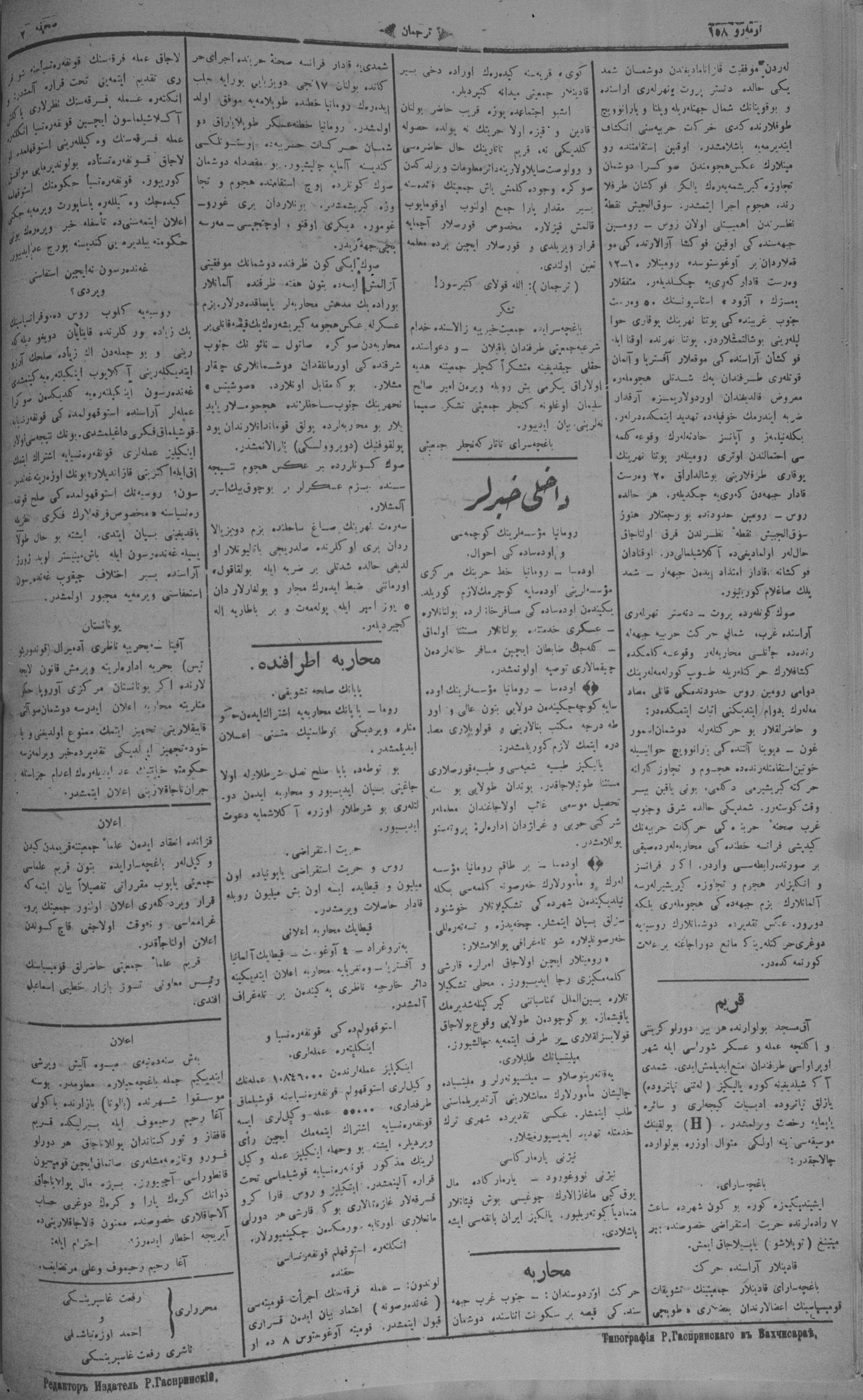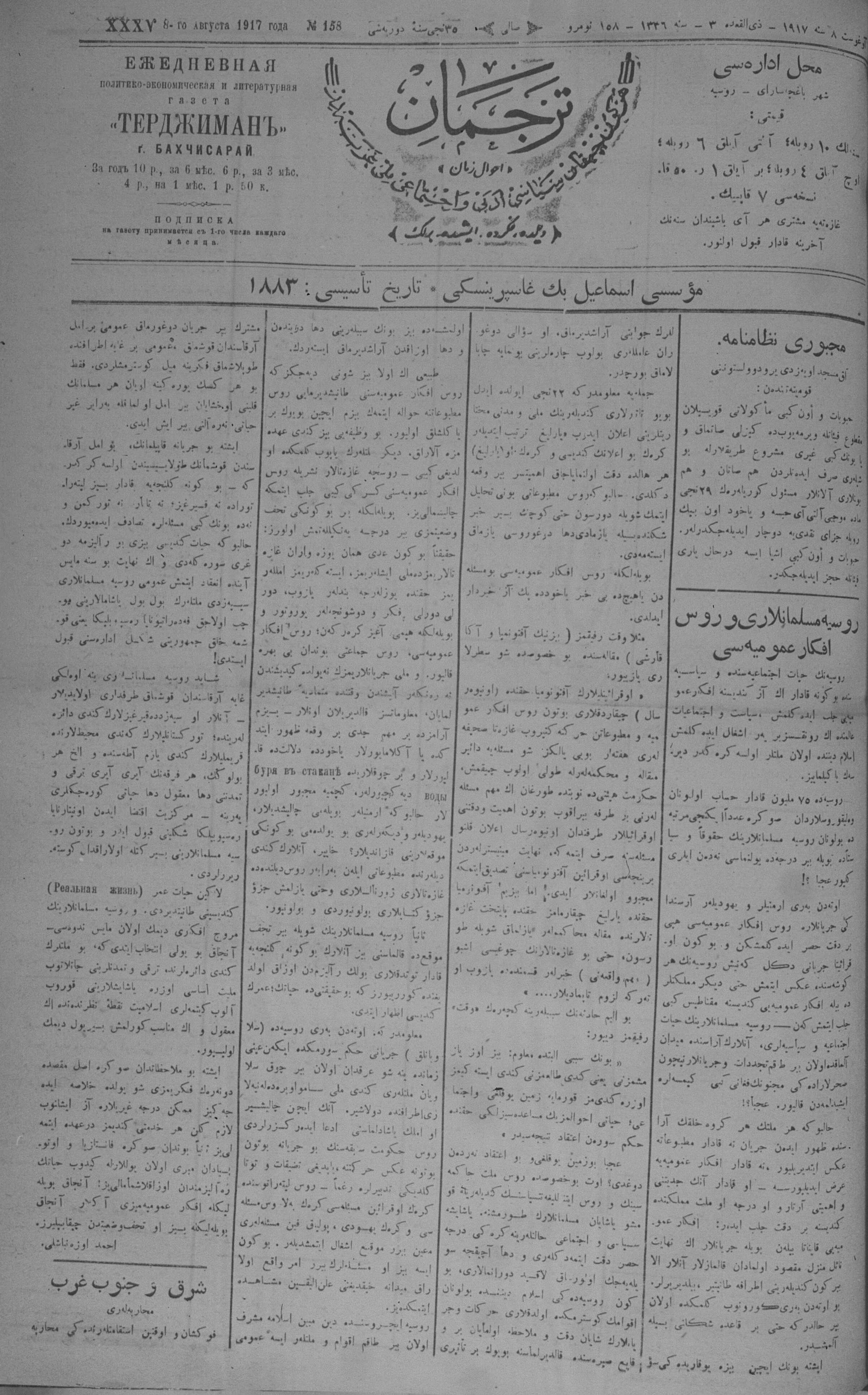 Turkish-Russian newspaper published in Crimea by İsmail Gaspıralı.