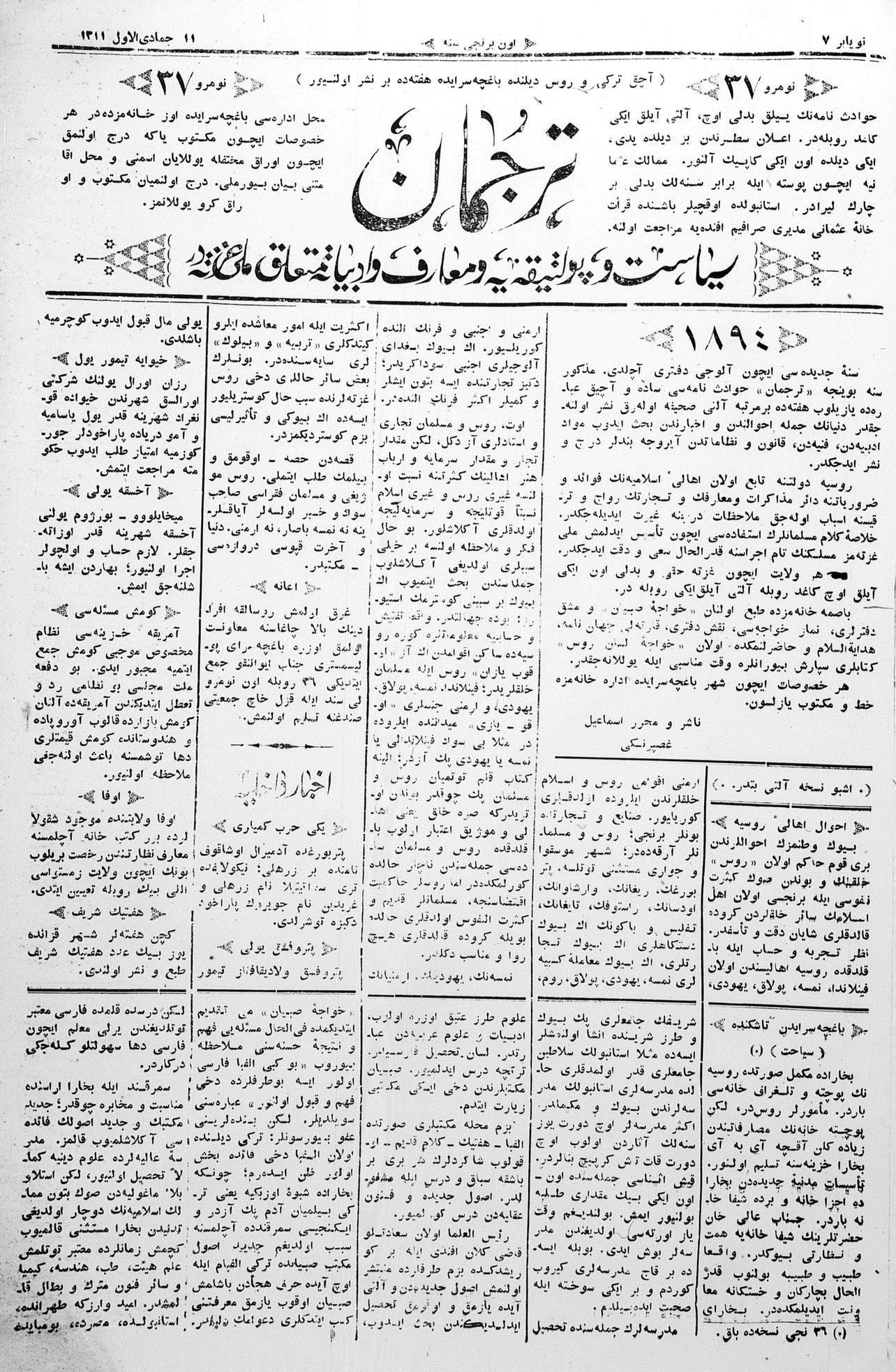 Tercüman, 07 November 1893 Year 11 No 37