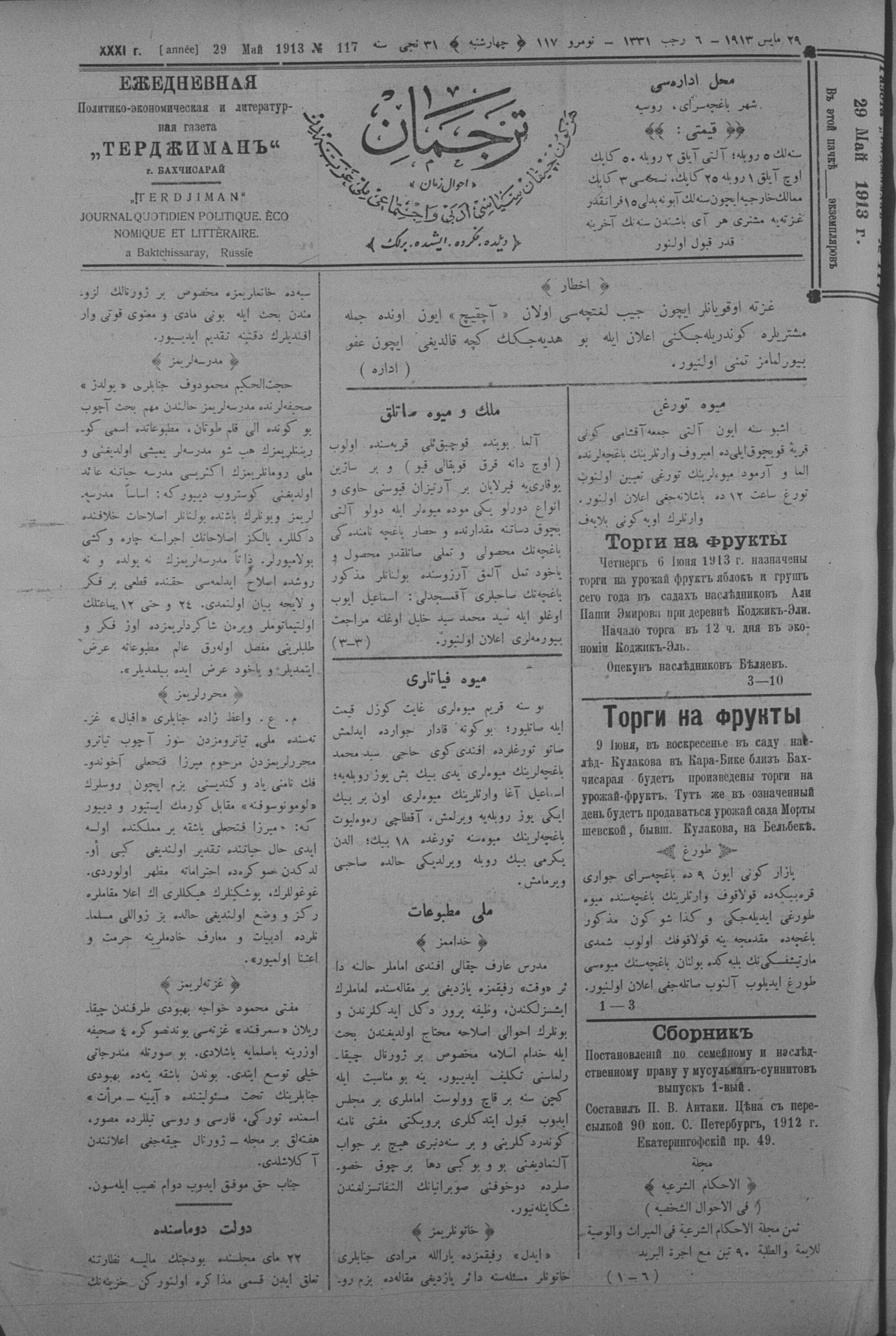Tercüman, 29 May 1913 Year 31 No 117