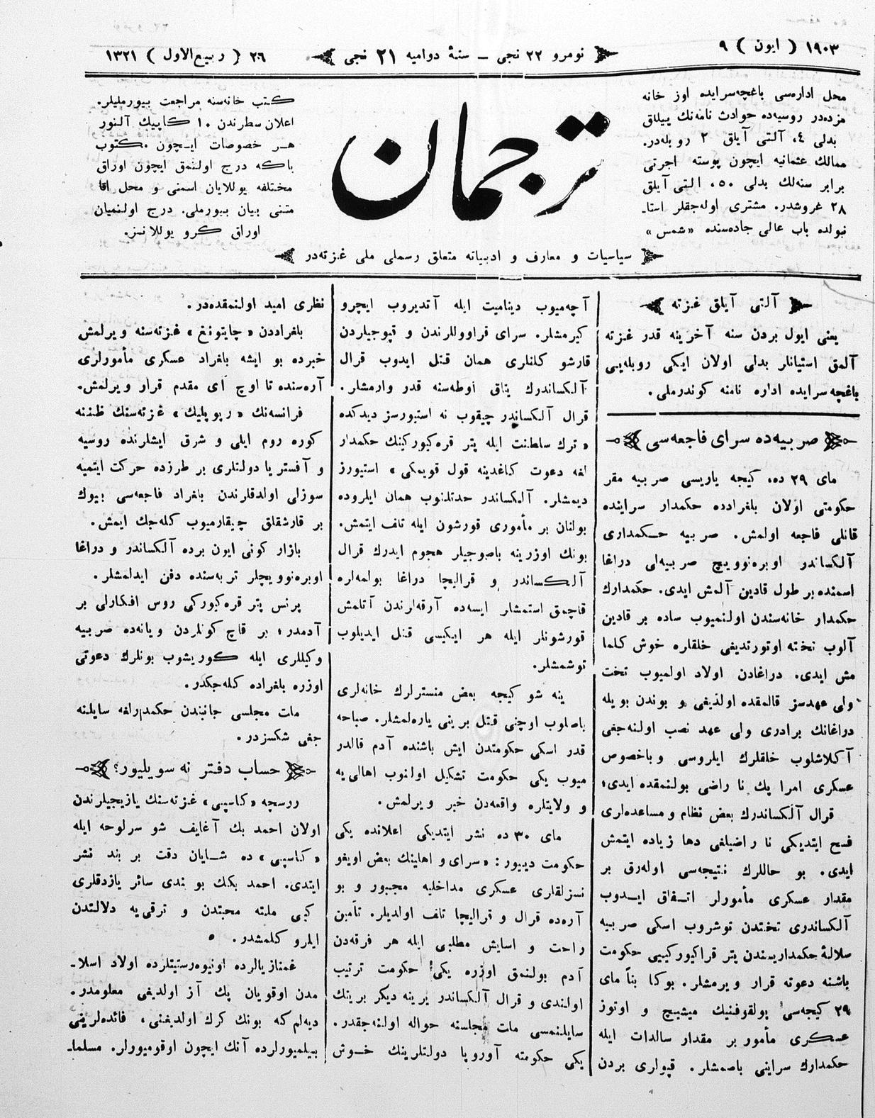 Tercüman, 09 June 1903 Year 21 No 22