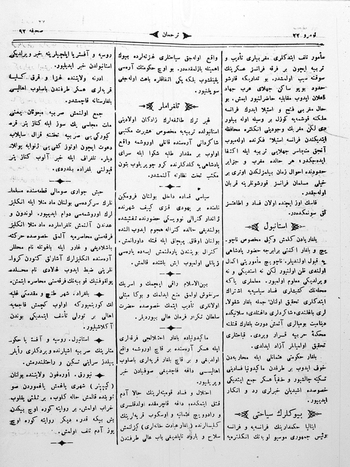 The name of the newspaper changed to Tercüman-ı Ahval-i Zaman in 1905. In 1909, it started to be published under its first name, Tercüman.