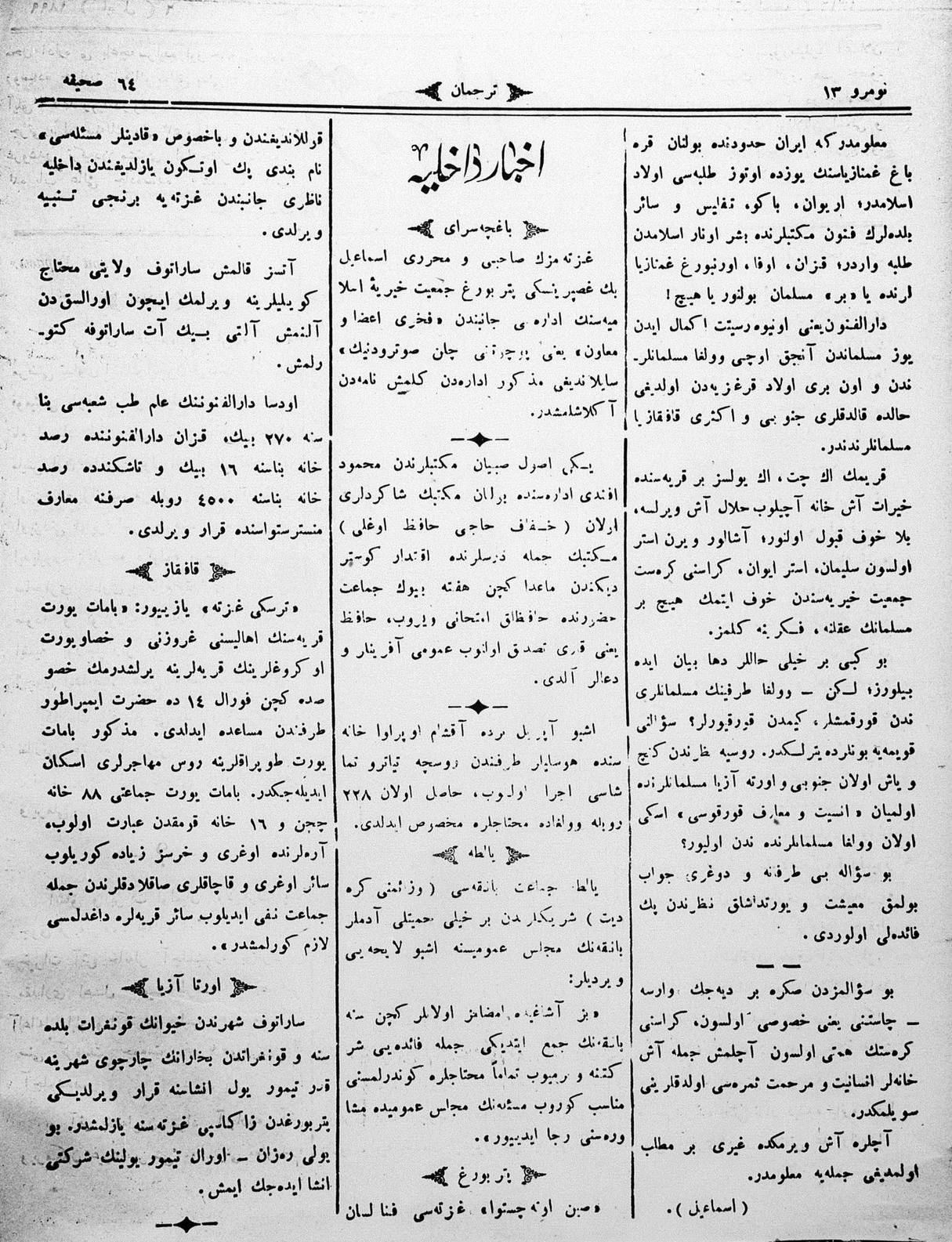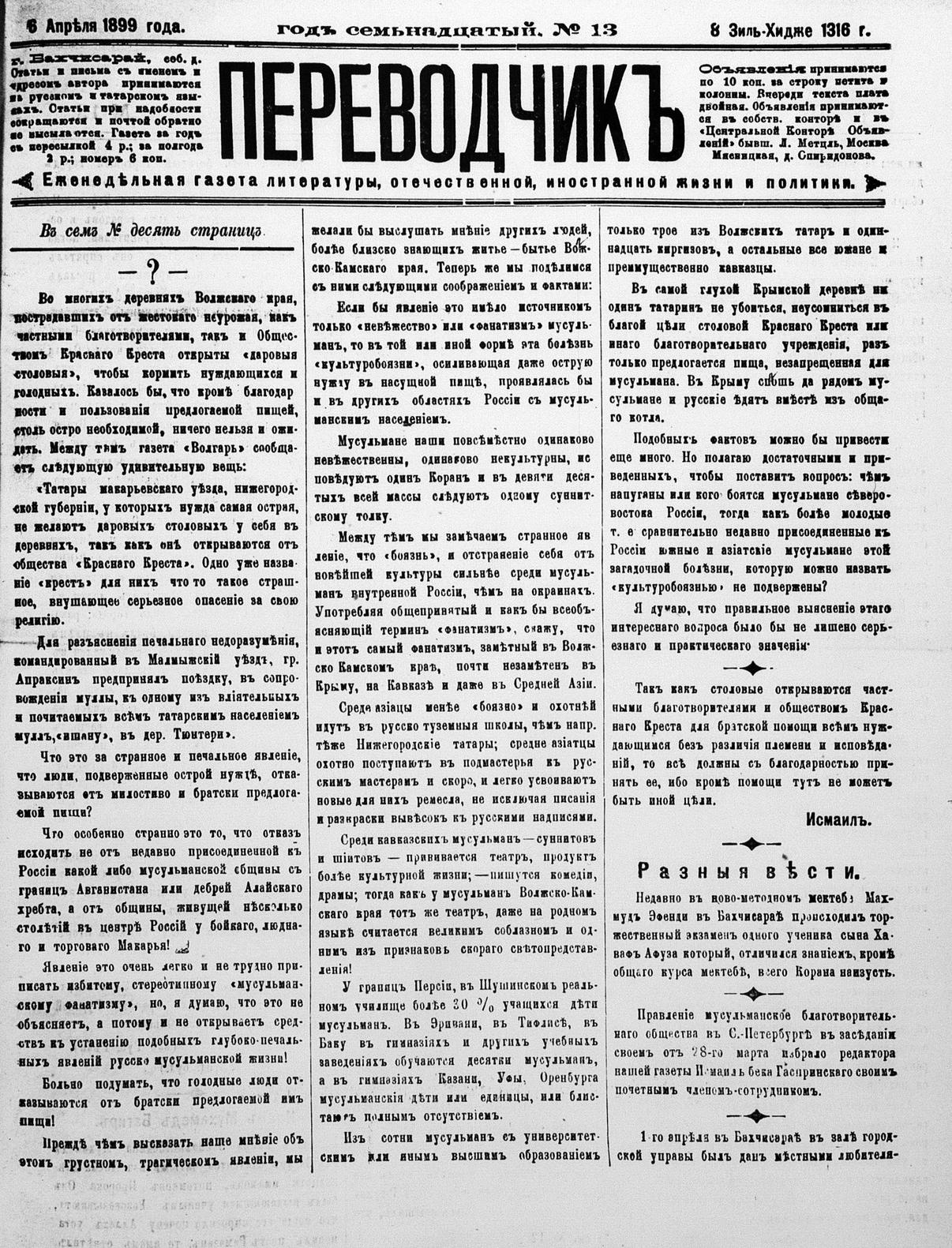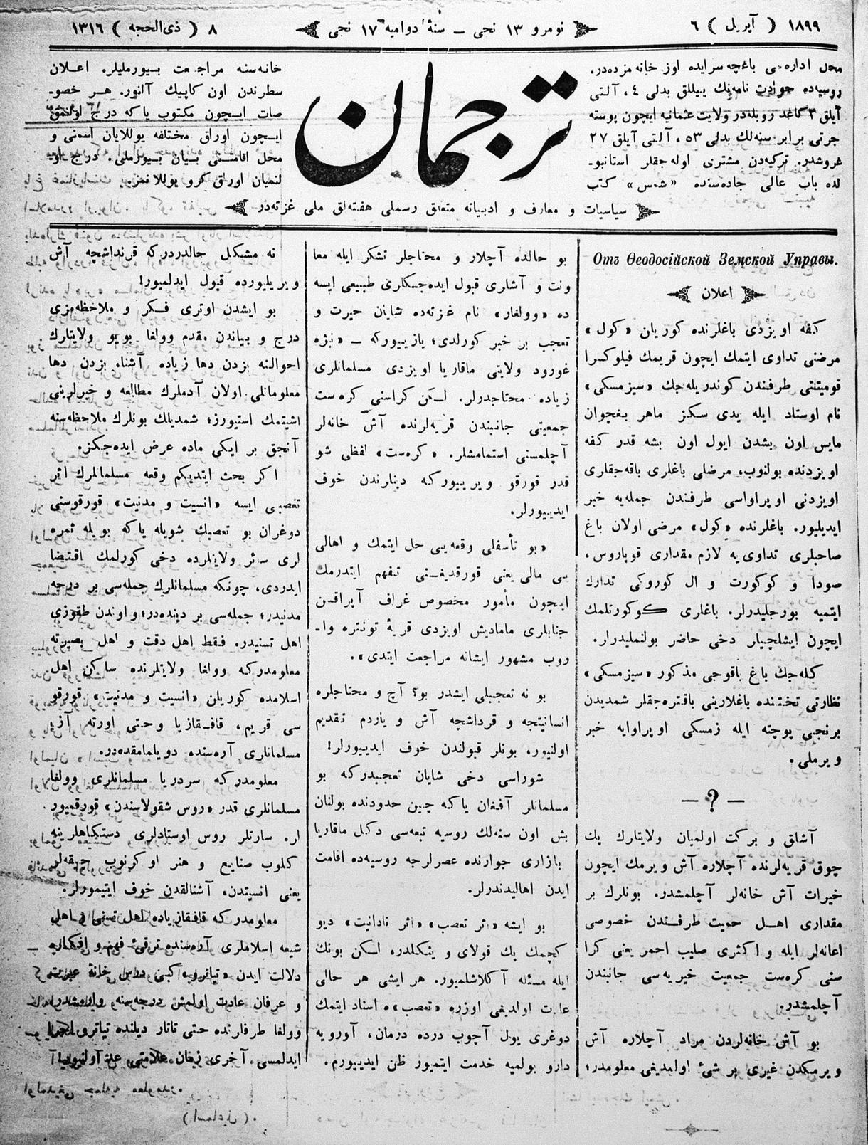 Turkish-Russian newspaper published in Crimea by İsmail Gaspıralı.