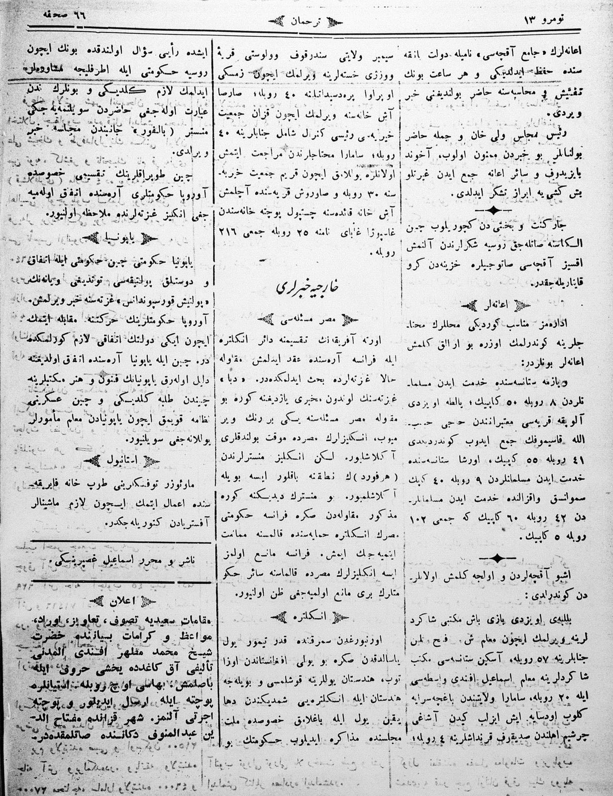 The name of the newspaper changed to Tercüman-ı Ahval-i Zaman in 1905. In 1909, it started to be published under its first name, Tercüman.