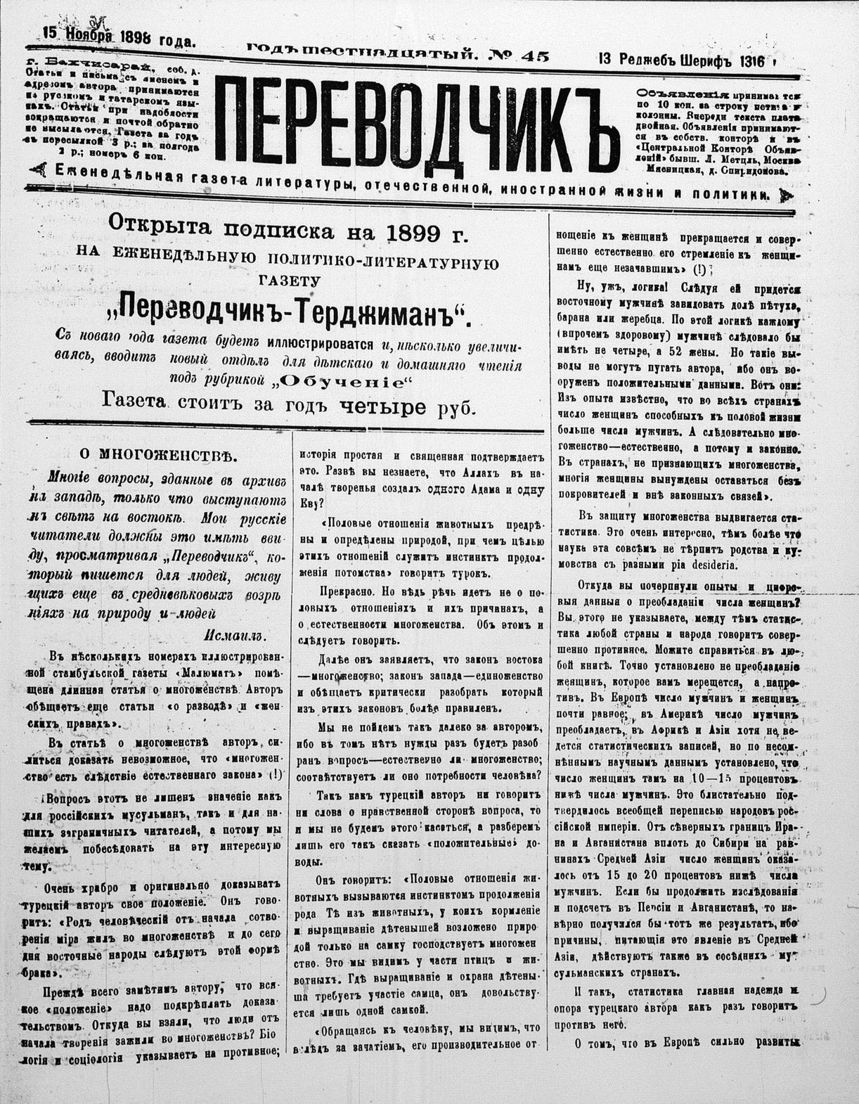 Tercüman, 15 November 1898 Year 16 No 45