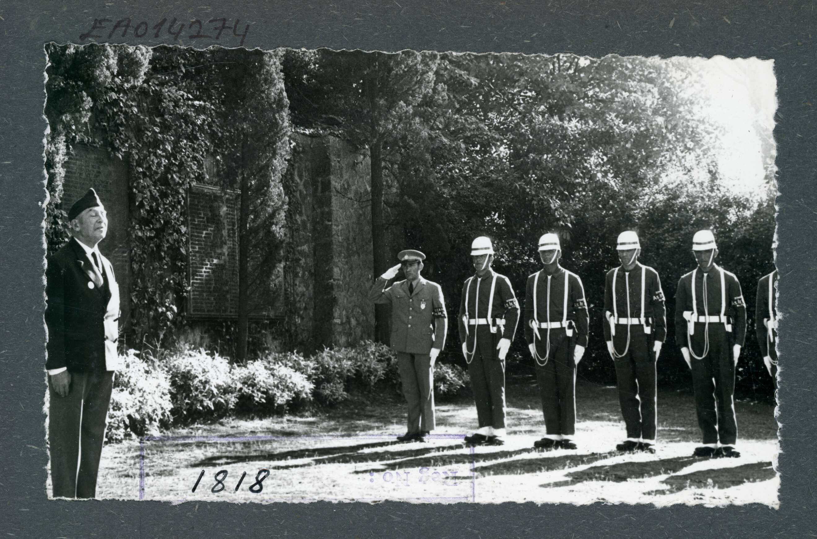 Alman muharip gazilerin Dolmabahçe Sarayı ziyaretlerinde Ekrem Rüştü Akömer ve tören kıtası