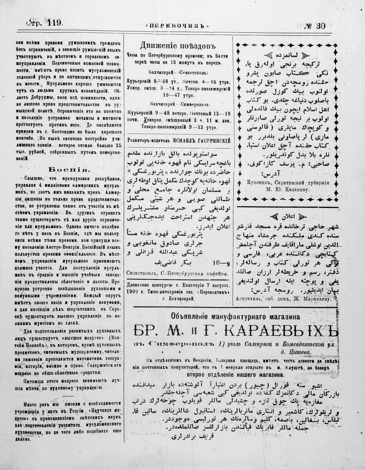 Turkish-Russian newspaper published in Crimea by İsmail Gaspıralı.