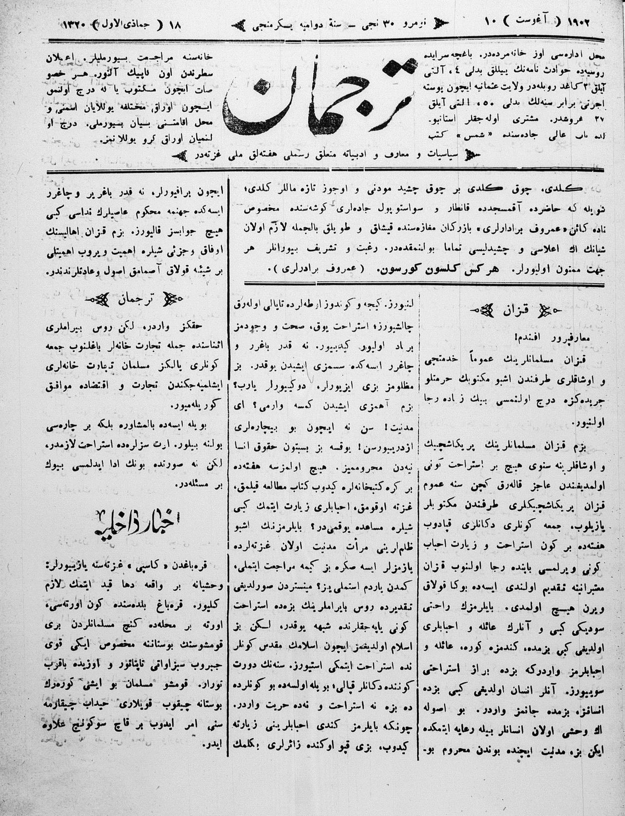 Tercüman, 10 August 1902 Year 20 No 30