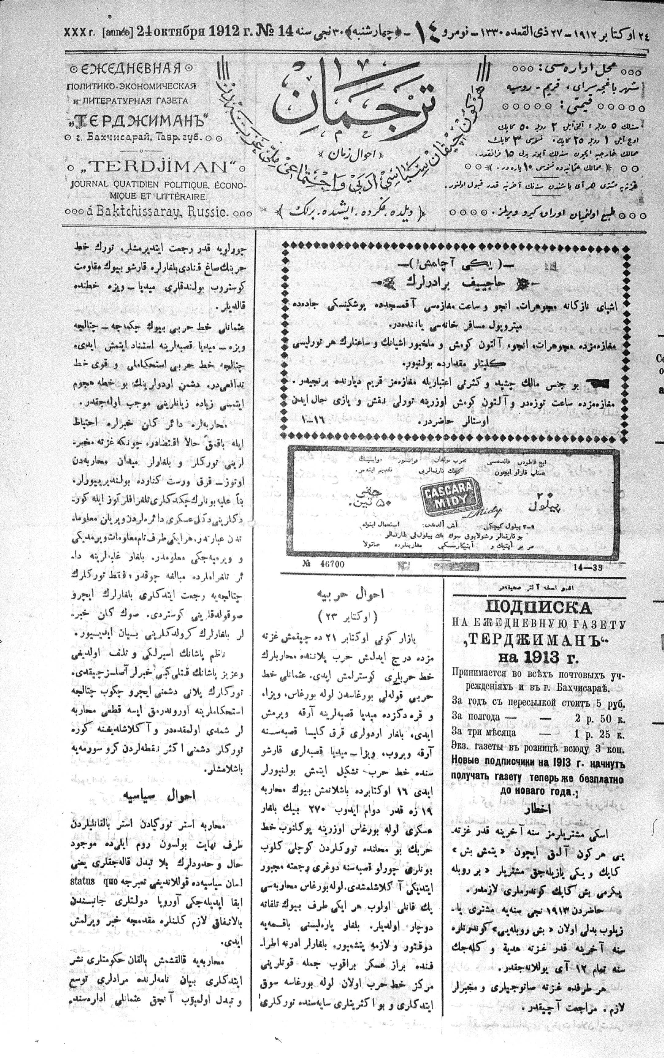 Turkish-Russian newspaper published in Crimea by İsmail Gaspıralı.