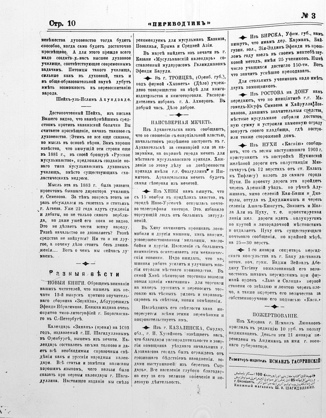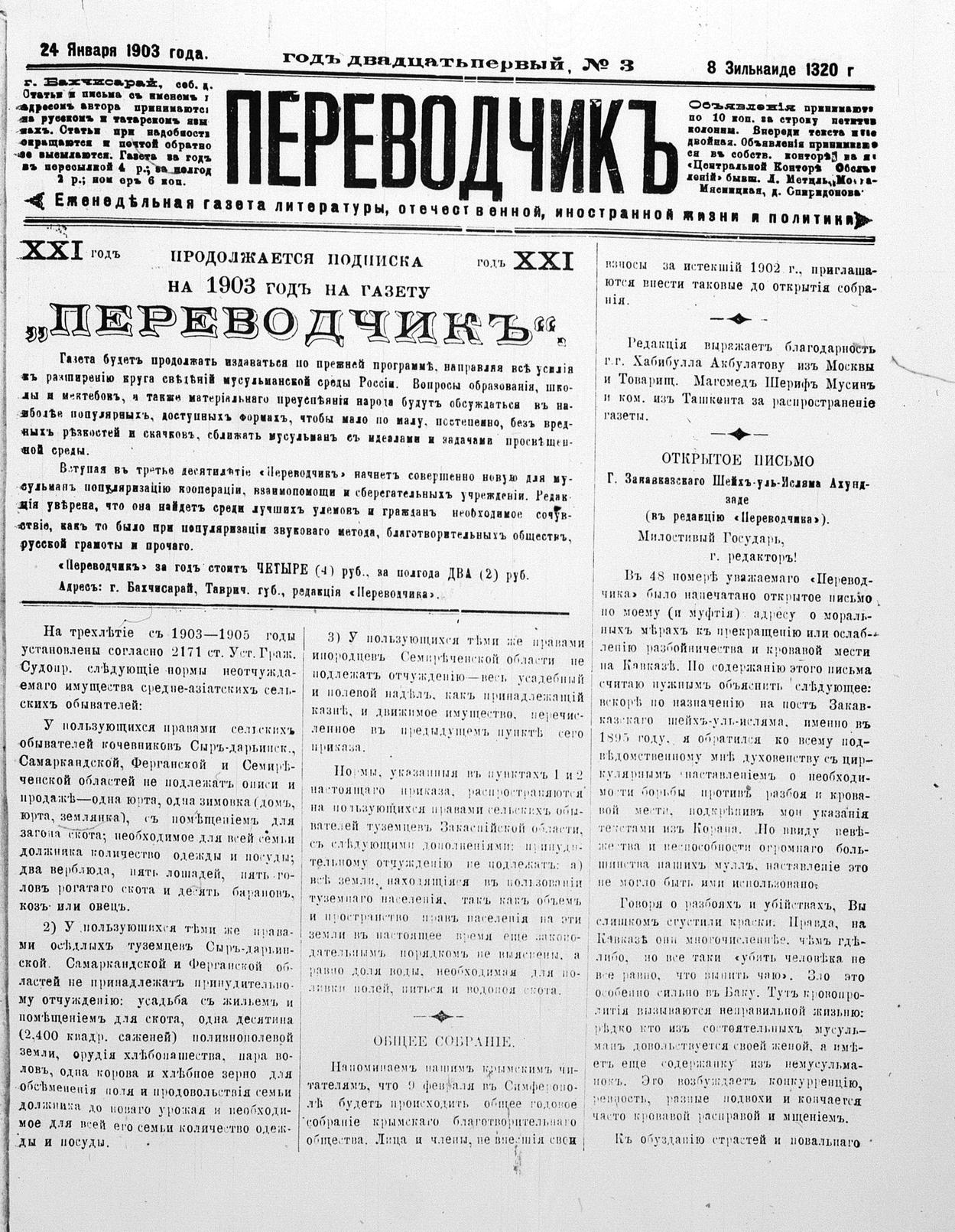 Turkish-Russian newspaper published in Crimea by İsmail Gaspıralı.