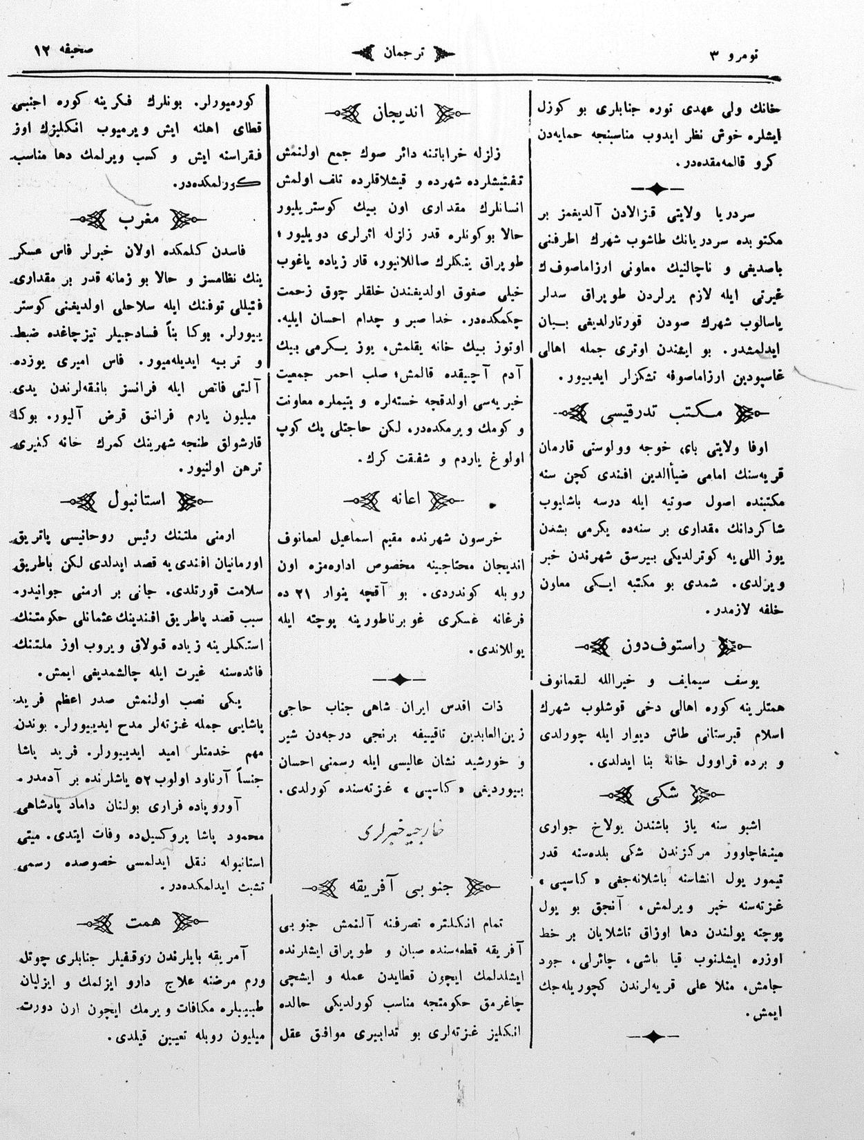 The name of the newspaper changed to Tercüman-ı Ahval-i Zaman in 1905. In 1909, it started to be published under its first name, Tercüman.