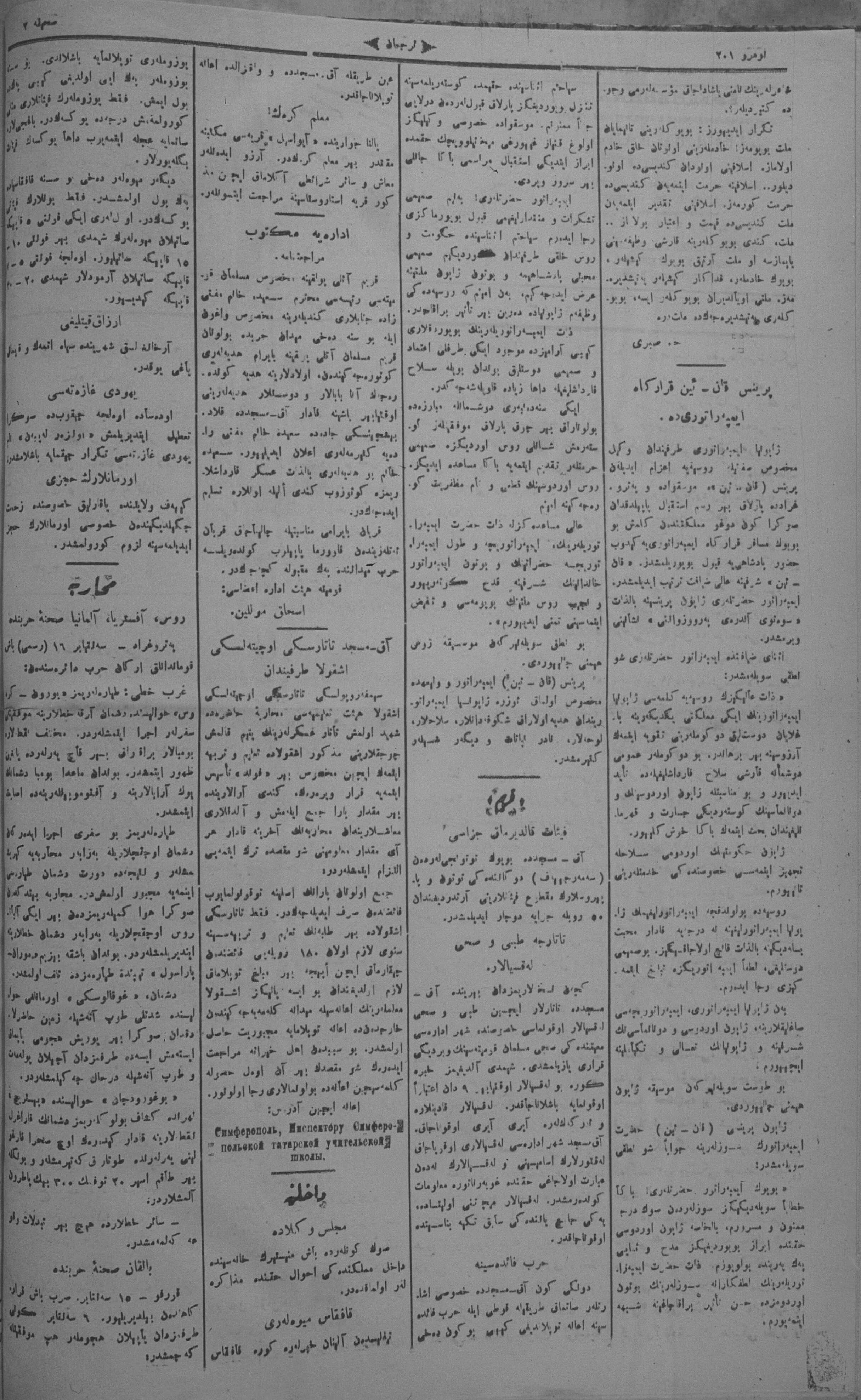 Turkish-Russian newspaper published in Crimea by İsmail Gaspıralı.