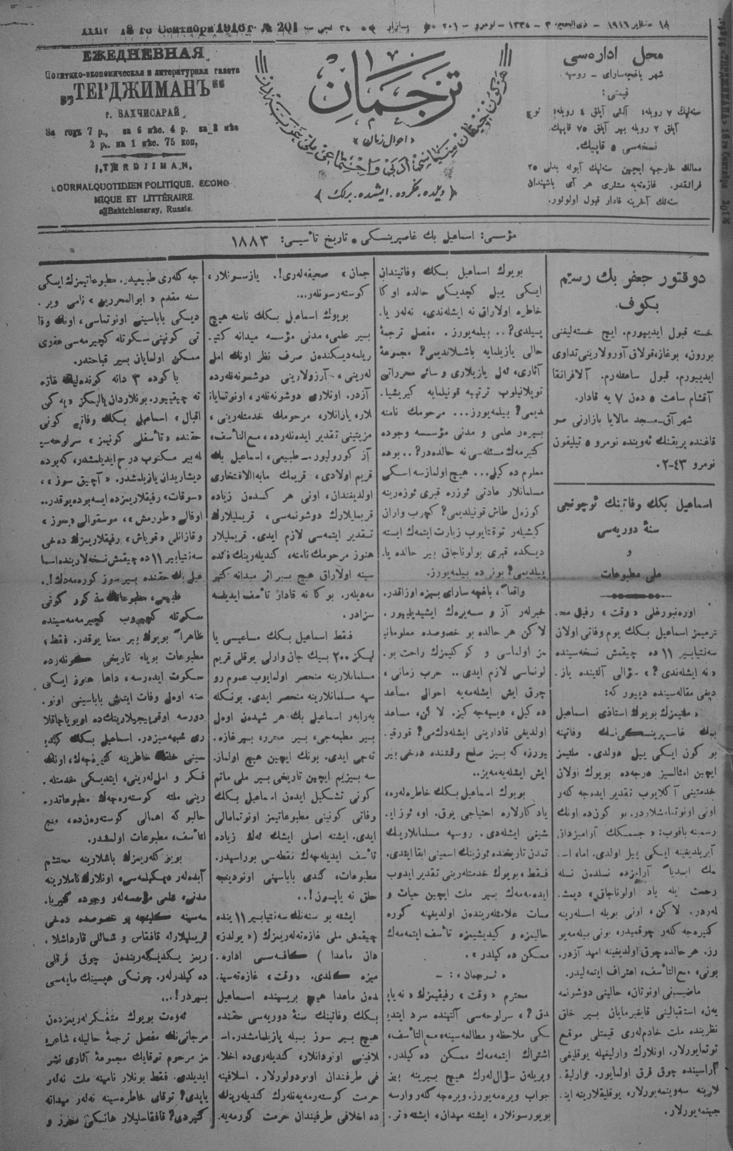 Tercüman, 18 September 1916 Year 34 No 201