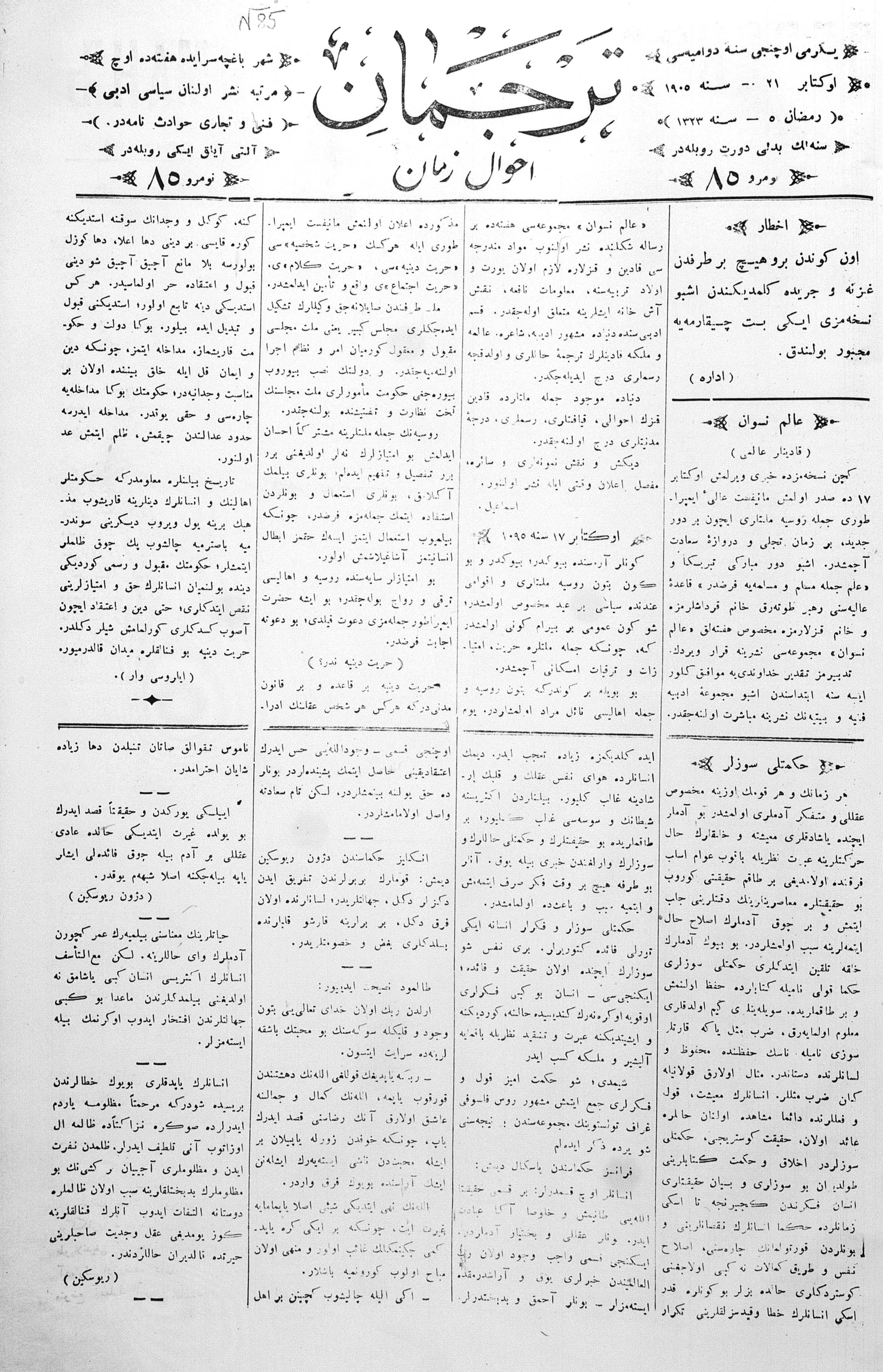 Tercüman, 21 October 1905 Year 23 No 85