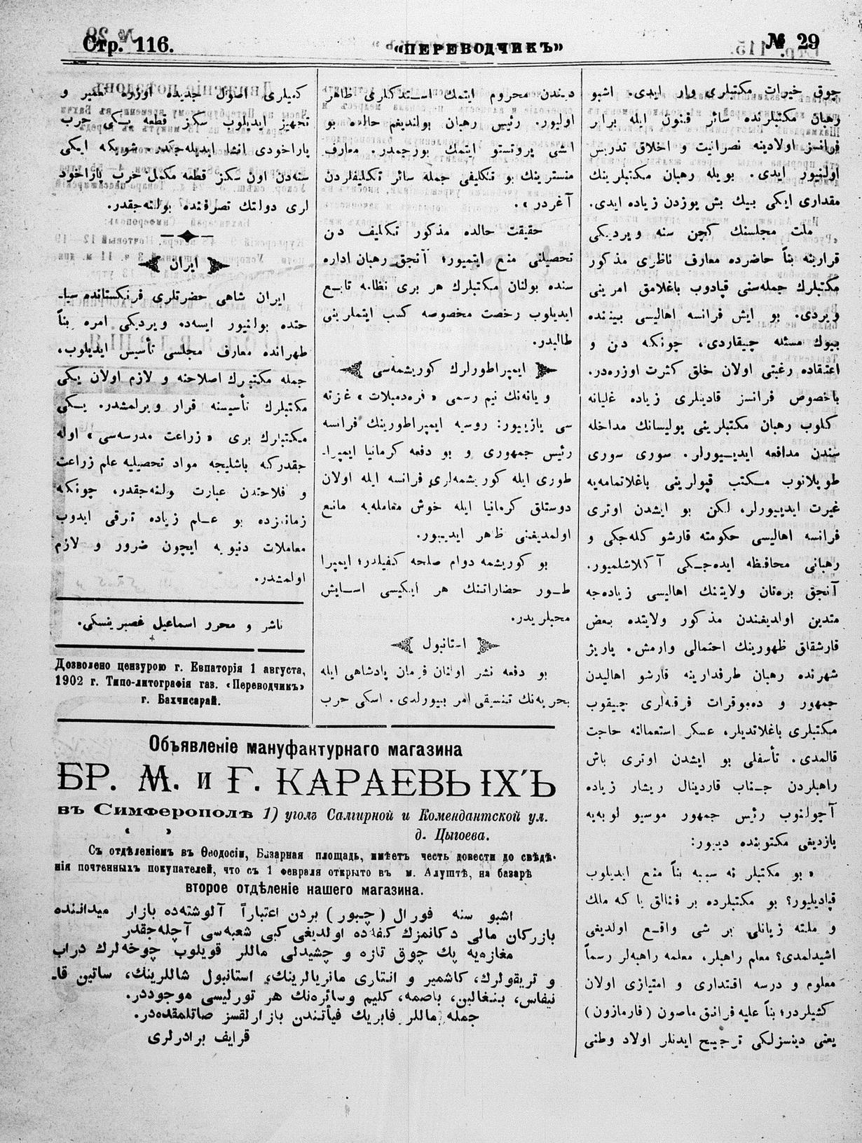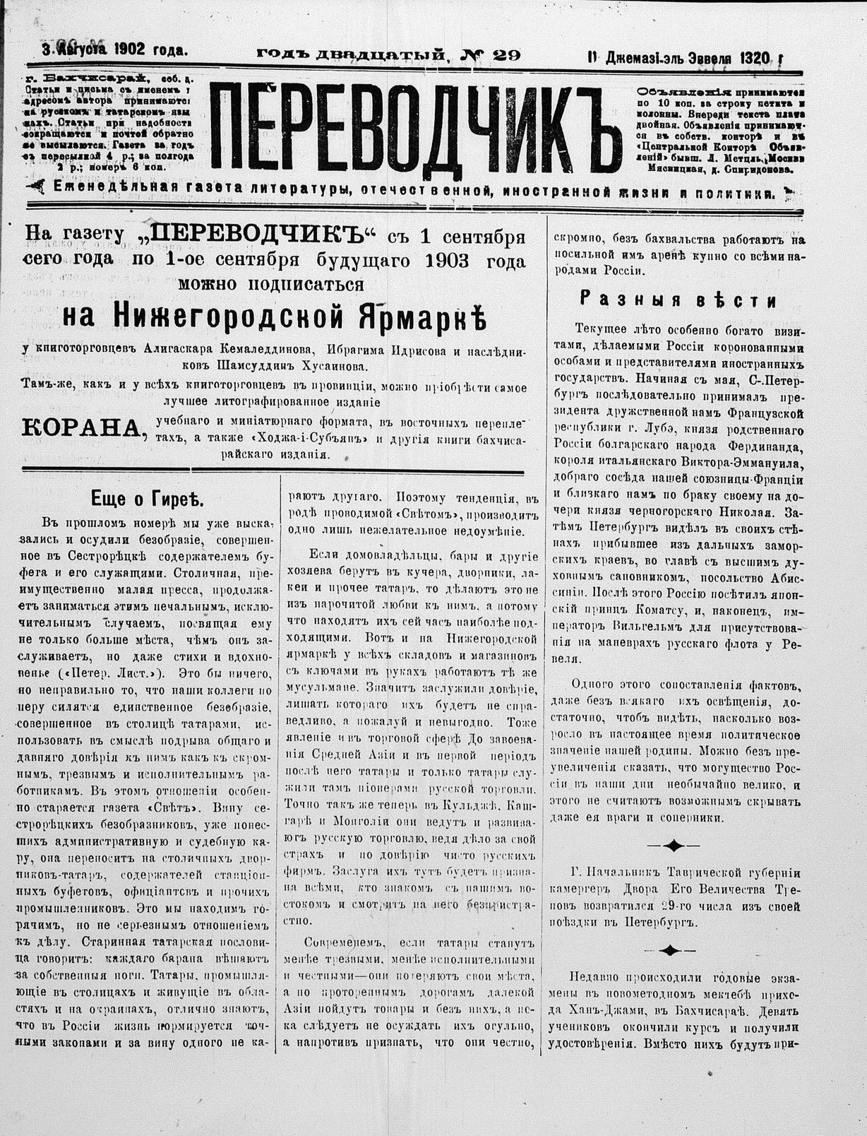 Tercüman, 03 August 1902 Year 20 No 29