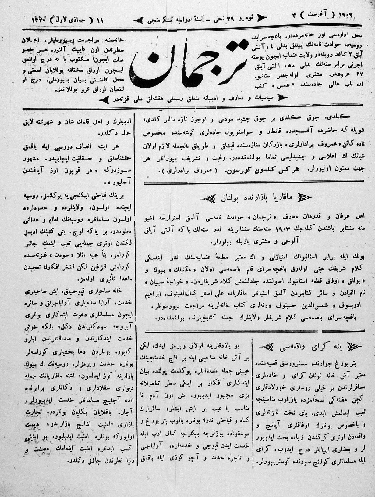 Turkish-Russian newspaper published in Crimea by İsmail Gaspıralı.