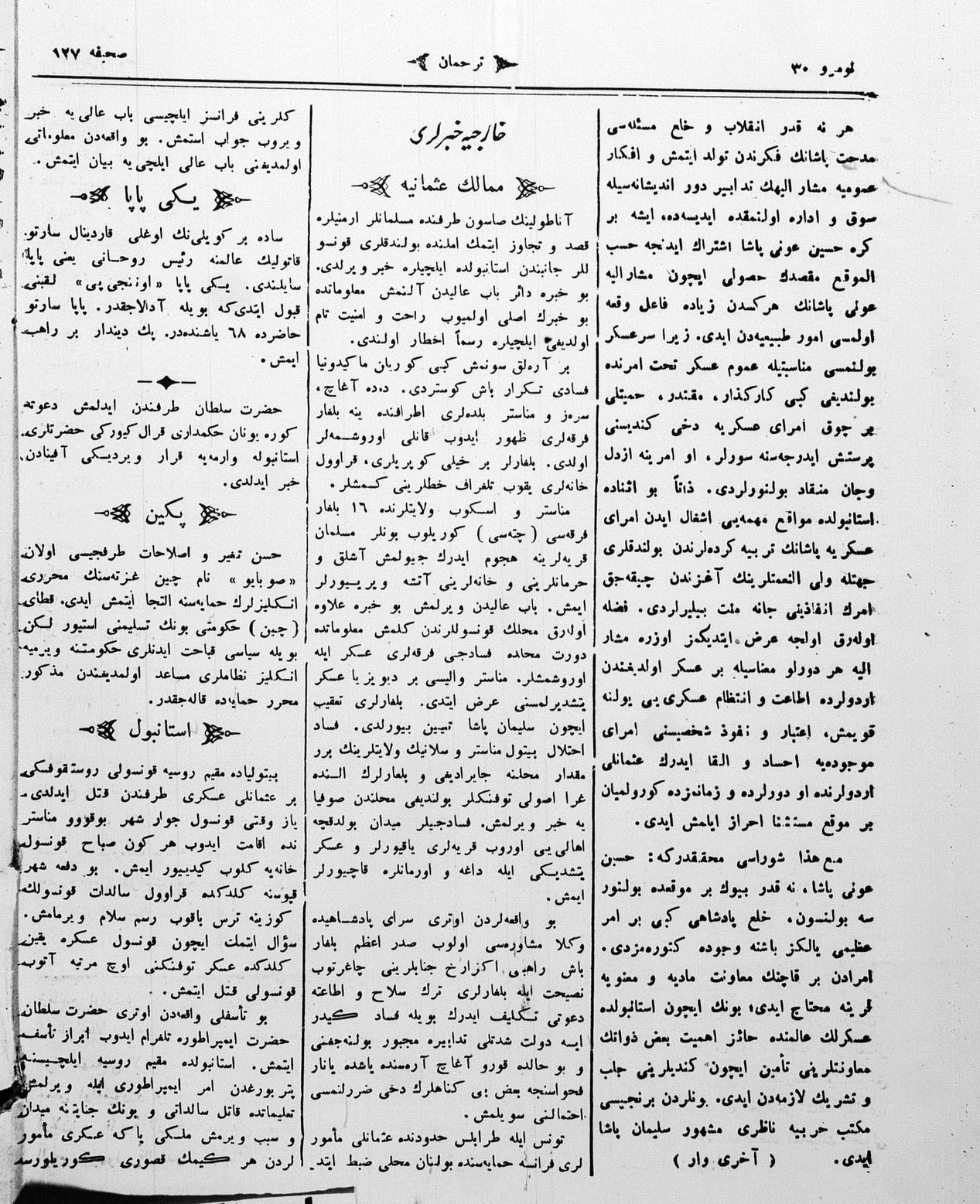 The name of the newspaper changed to Tercüman-ı Ahval-i Zaman in 1905. In 1909, it started to be published under its first name, Tercüman.
