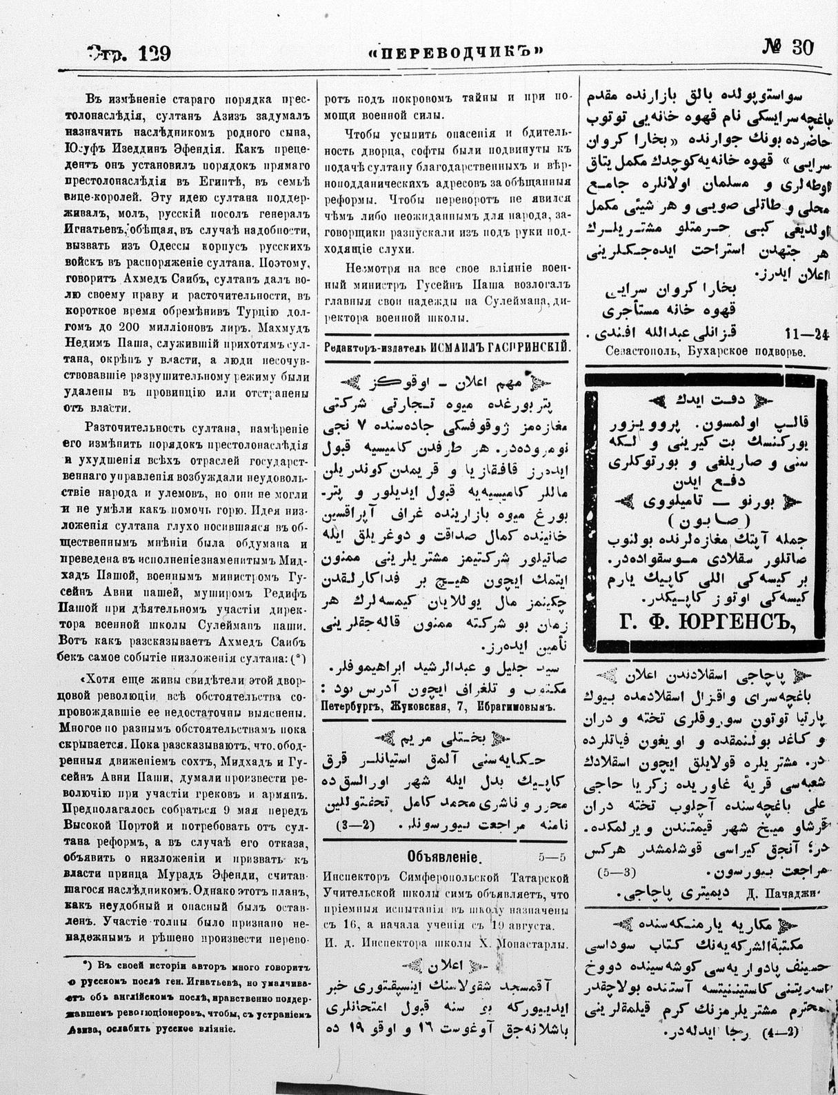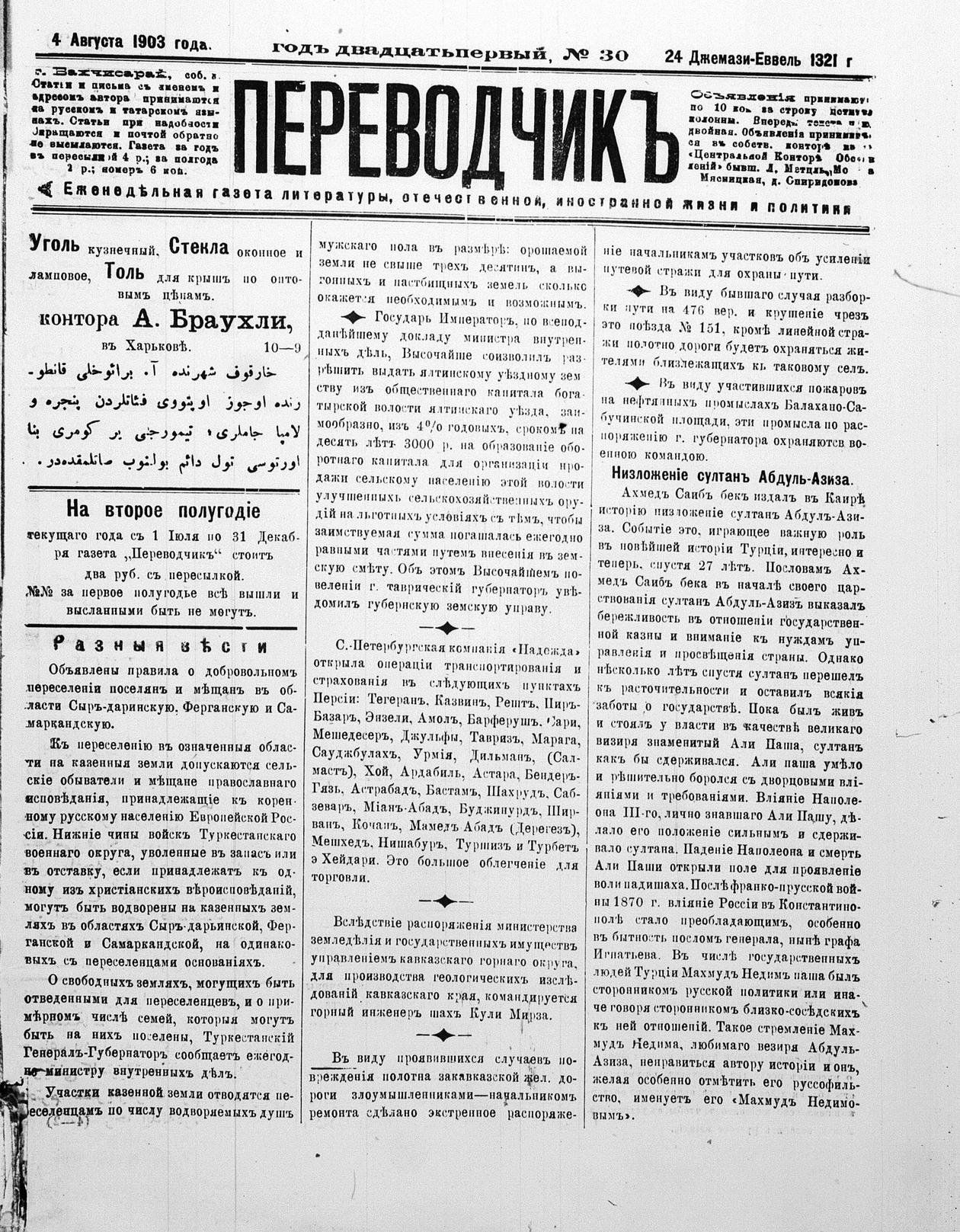 Turkish-Russian newspaper published in Crimea by İsmail Gaspıralı.