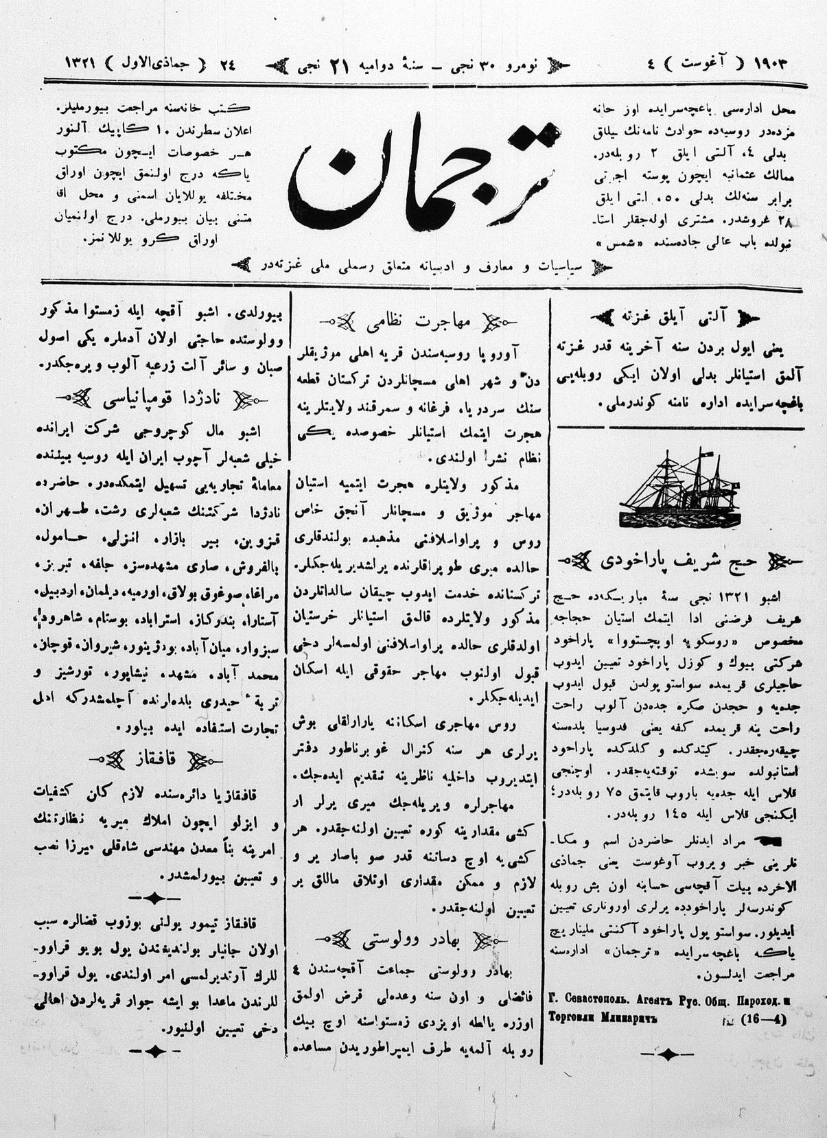 Tercüman, 04 August 1903 Year 21 No 30