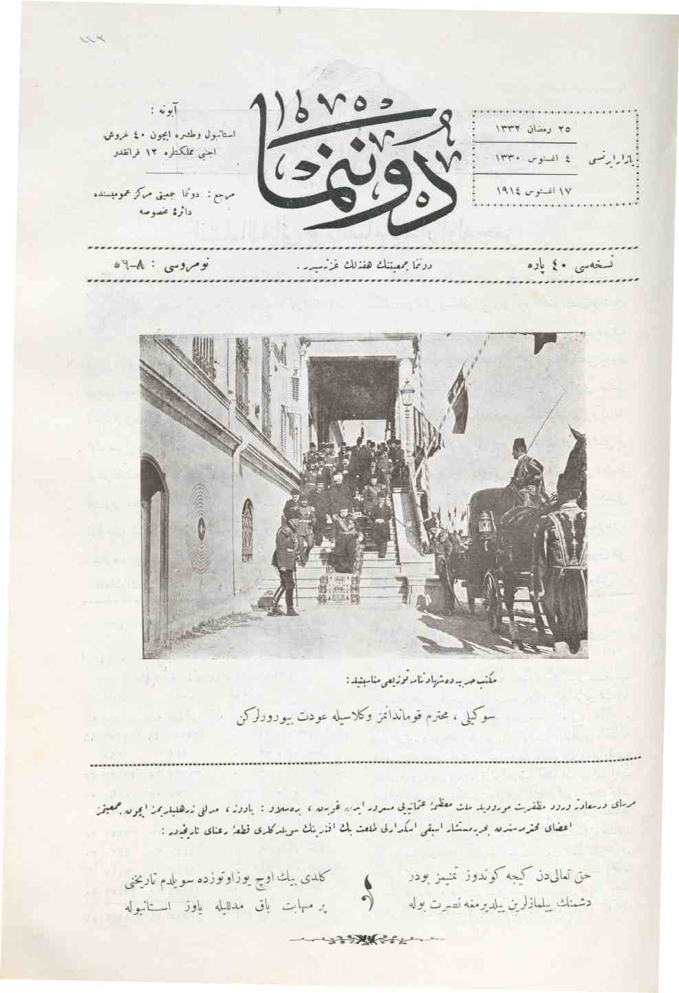 The name of the periodical was published under the following titles in different periods: Donanma: Donanma Cemiyetinin haftalık gazetesi; Donanma: istikbal denizlerdedir; Donanma: şimdilik ayda bir defa neşrolunur; Donanma: ayda bir defa neşr olunur, musavver, ahlaki, edebi, tarihi, fenni mecmuadır.