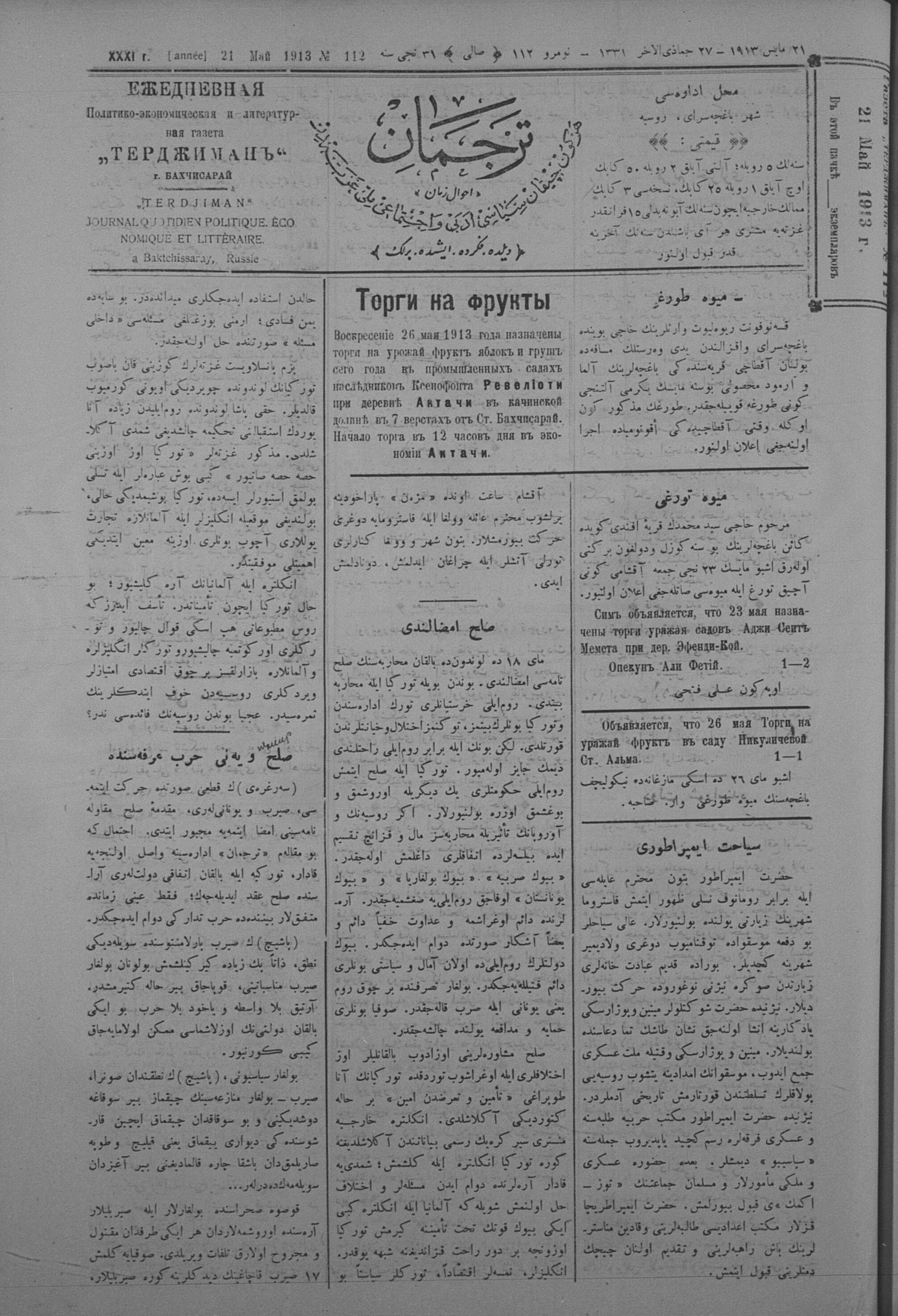 Tercüman, 21 May 1913 Year 31 No 112
