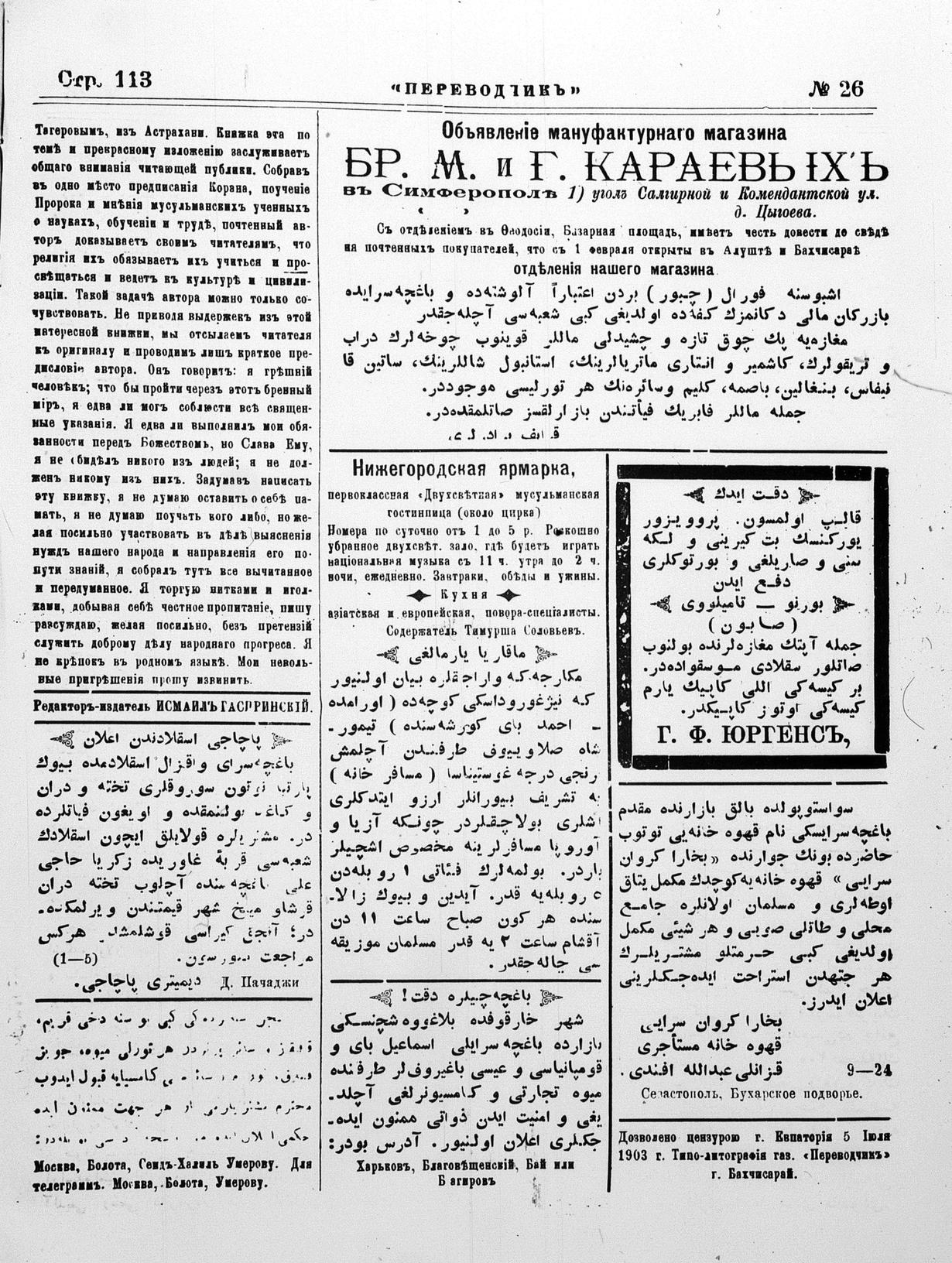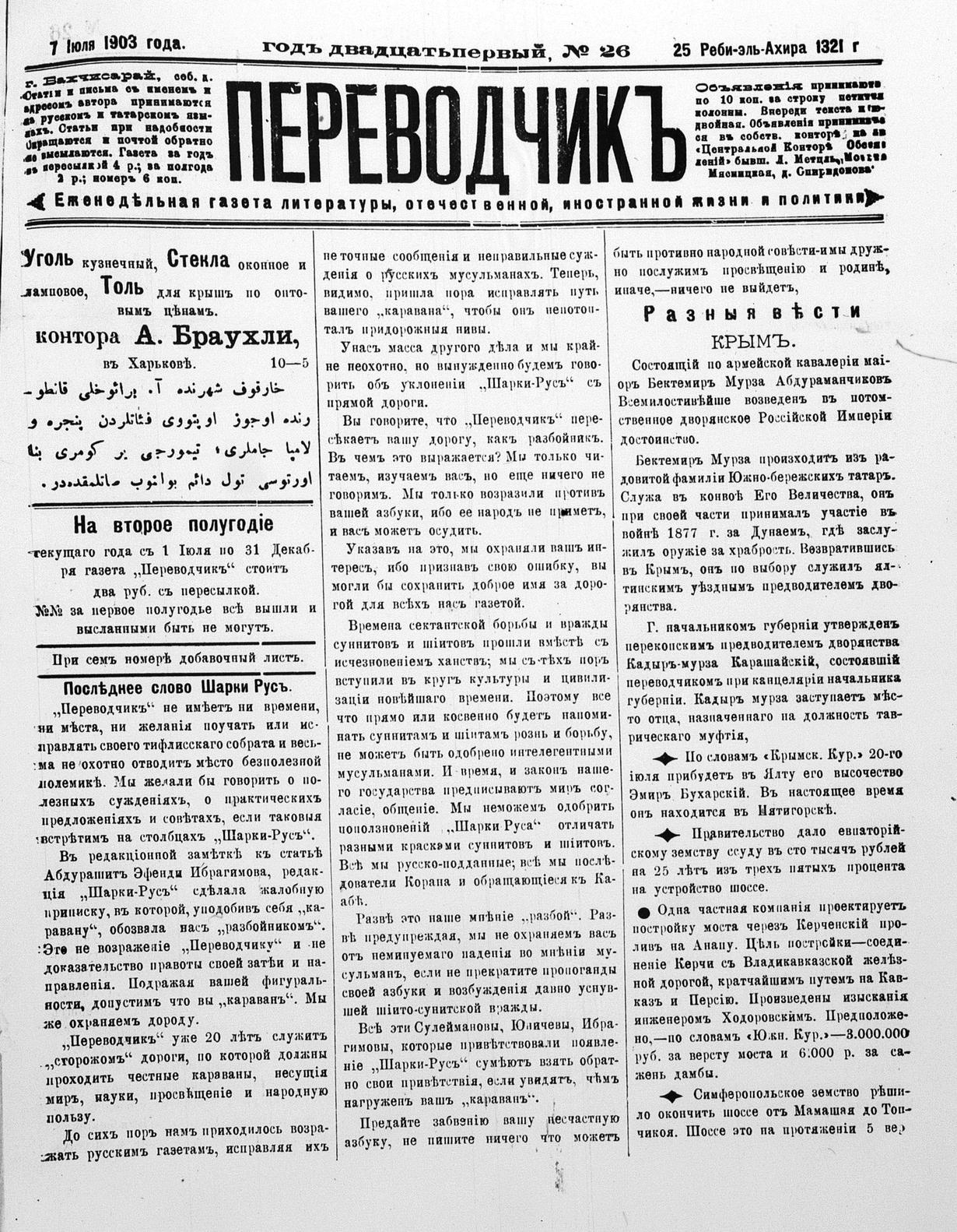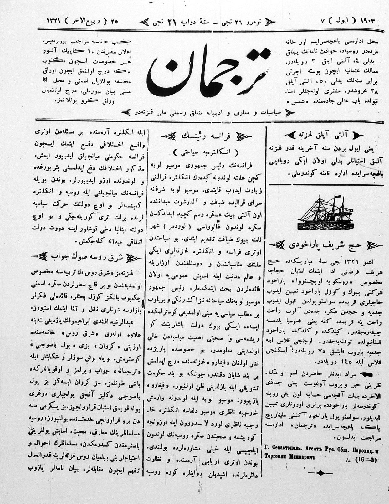 Turkish-Russian newspaper published in Crimea by İsmail Gaspıralı.