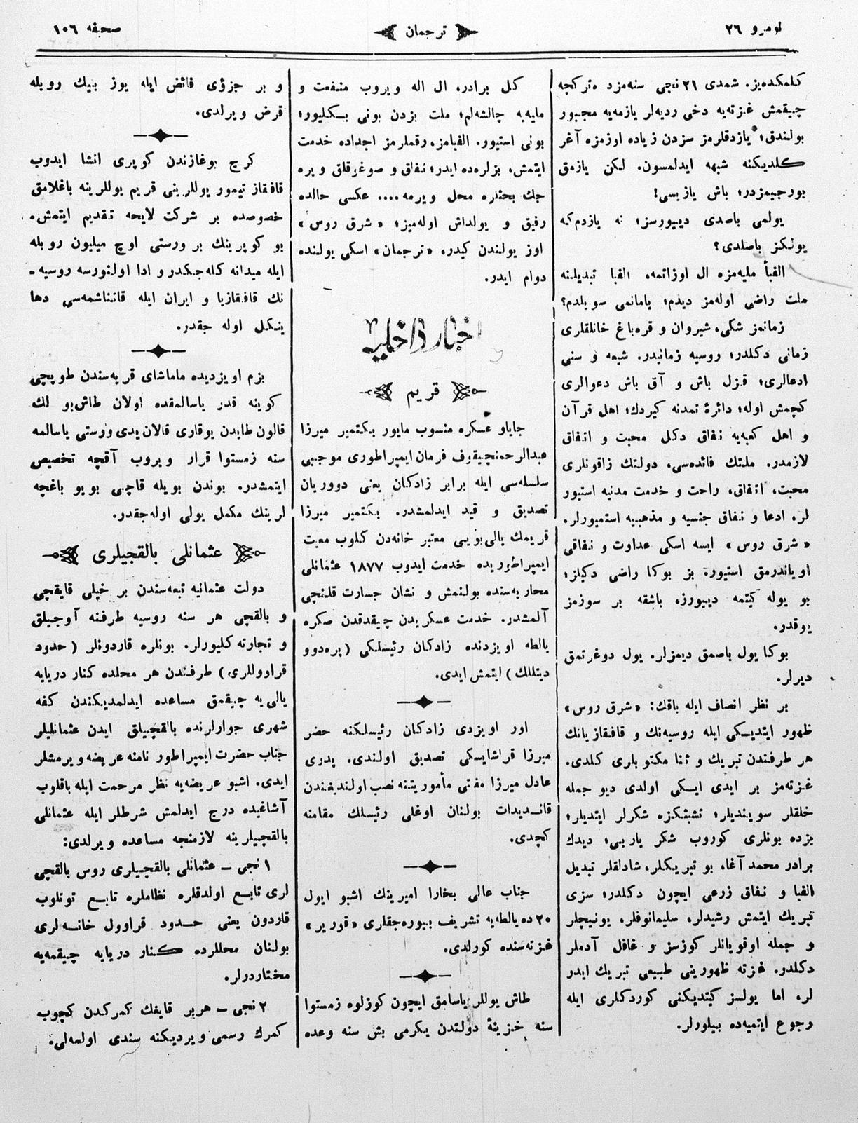 The name of the newspaper changed to Tercüman-ı Ahval-i Zaman in 1905. In 1909, it started to be published under its first name, Tercüman.