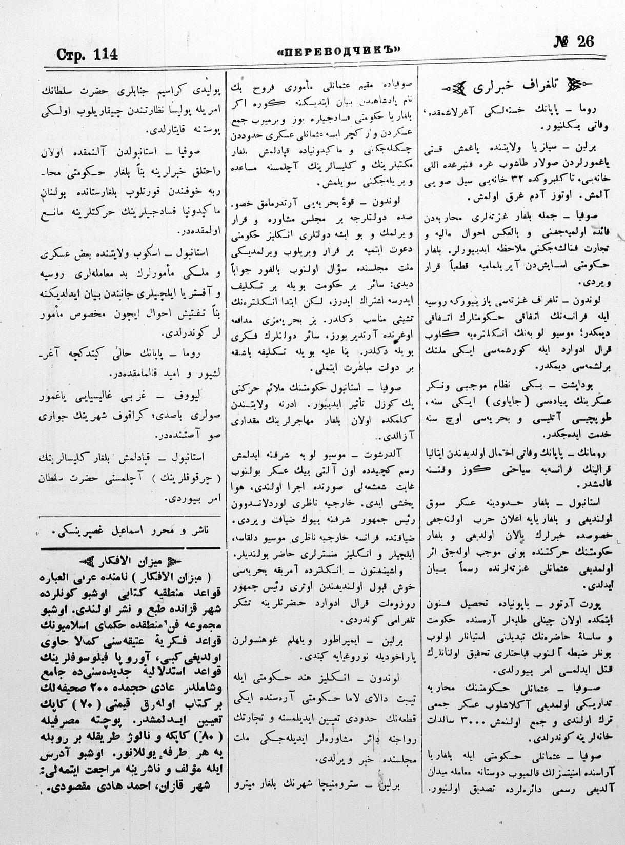 Different spellings of Tercüman: Terdzhiman, Terjuman, Perevodçik and Terjiman.