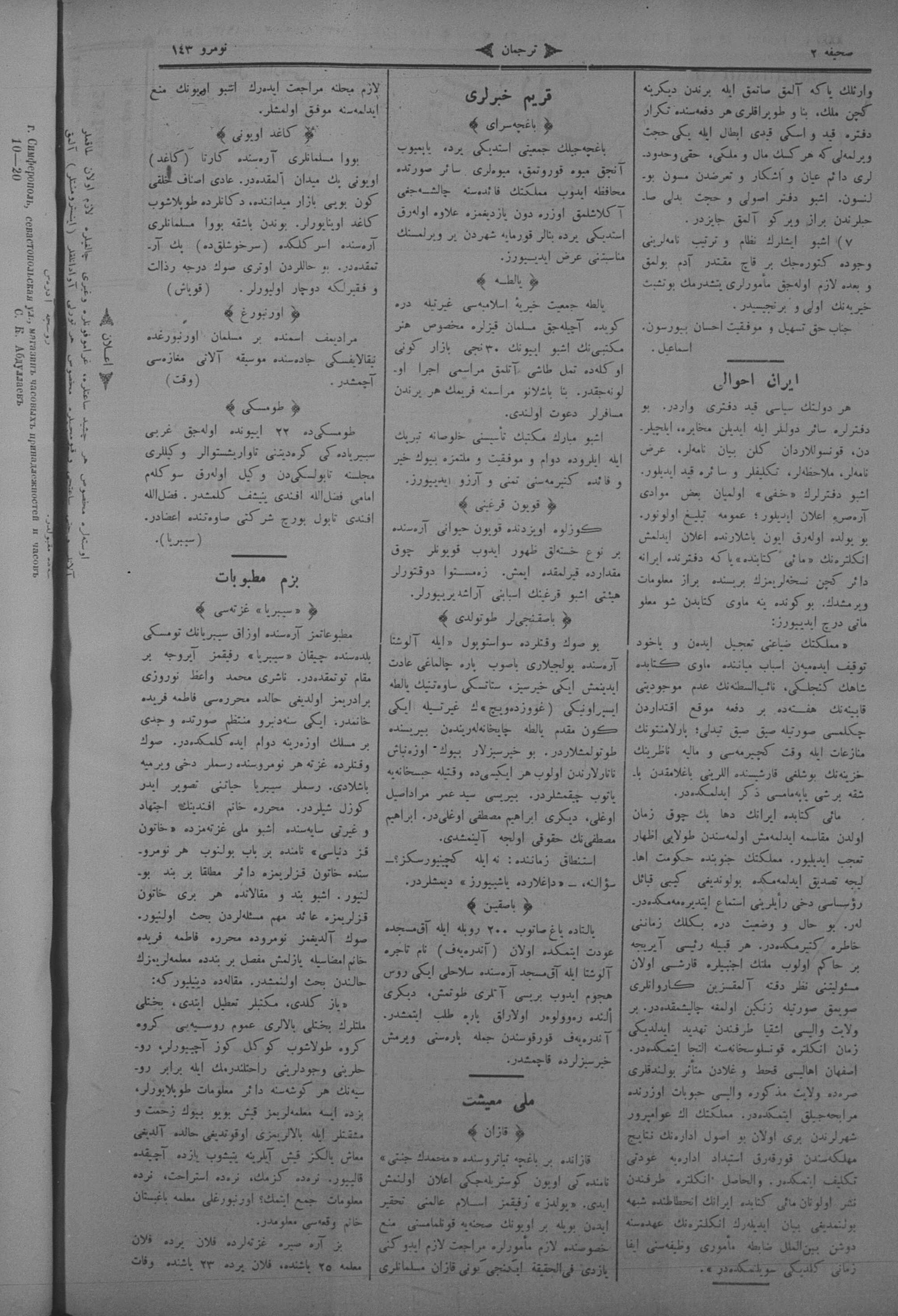 Turkish-Russian newspaper published in Crimea by İsmail Gaspıralı.