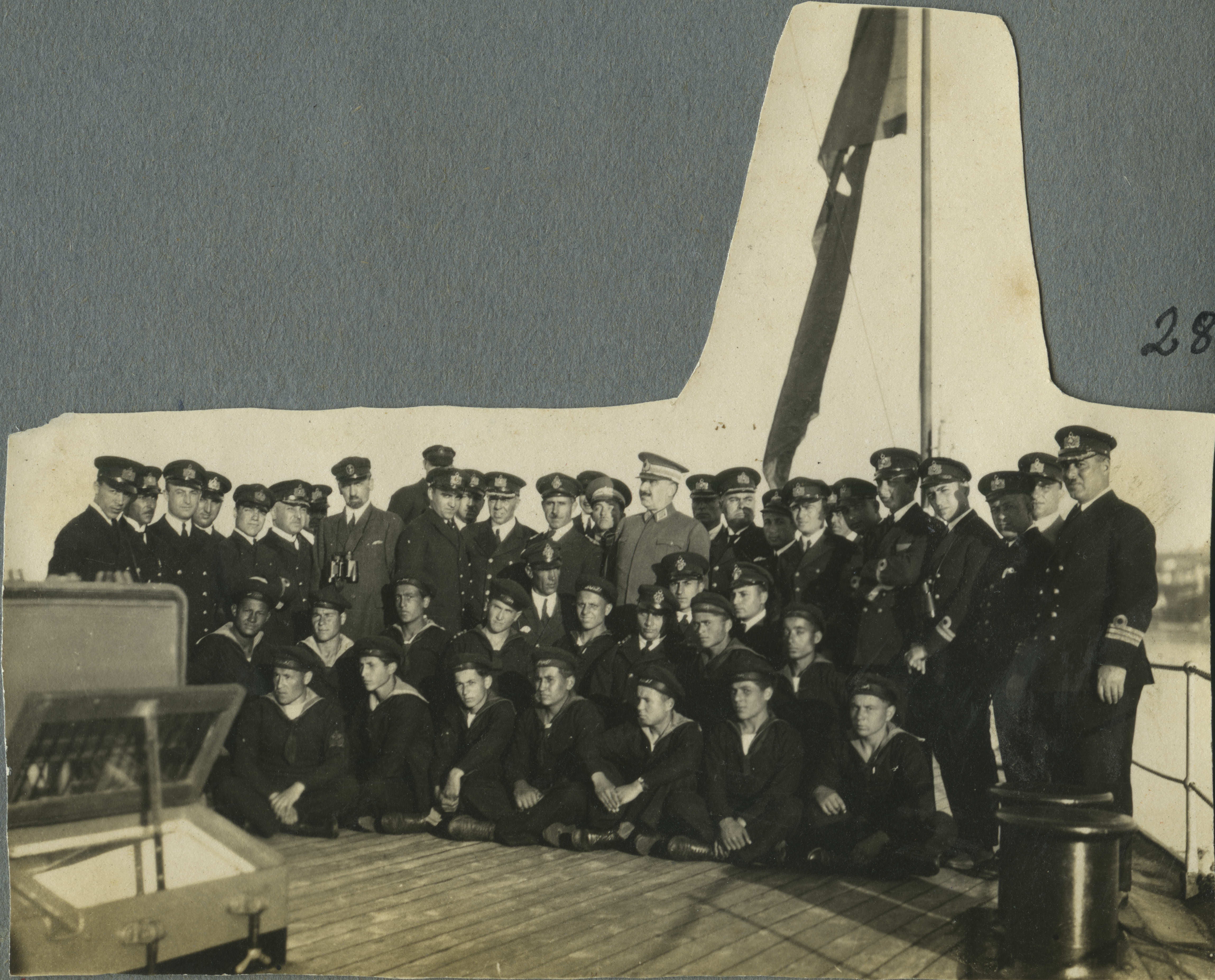 Türk donanma gemilerinin birinde bahriye subay ve askerkleri gemi güvertesinde iken Mareşal Fevzi Çakmak ile beraber çektirdikleri hatıra fotoğrafı