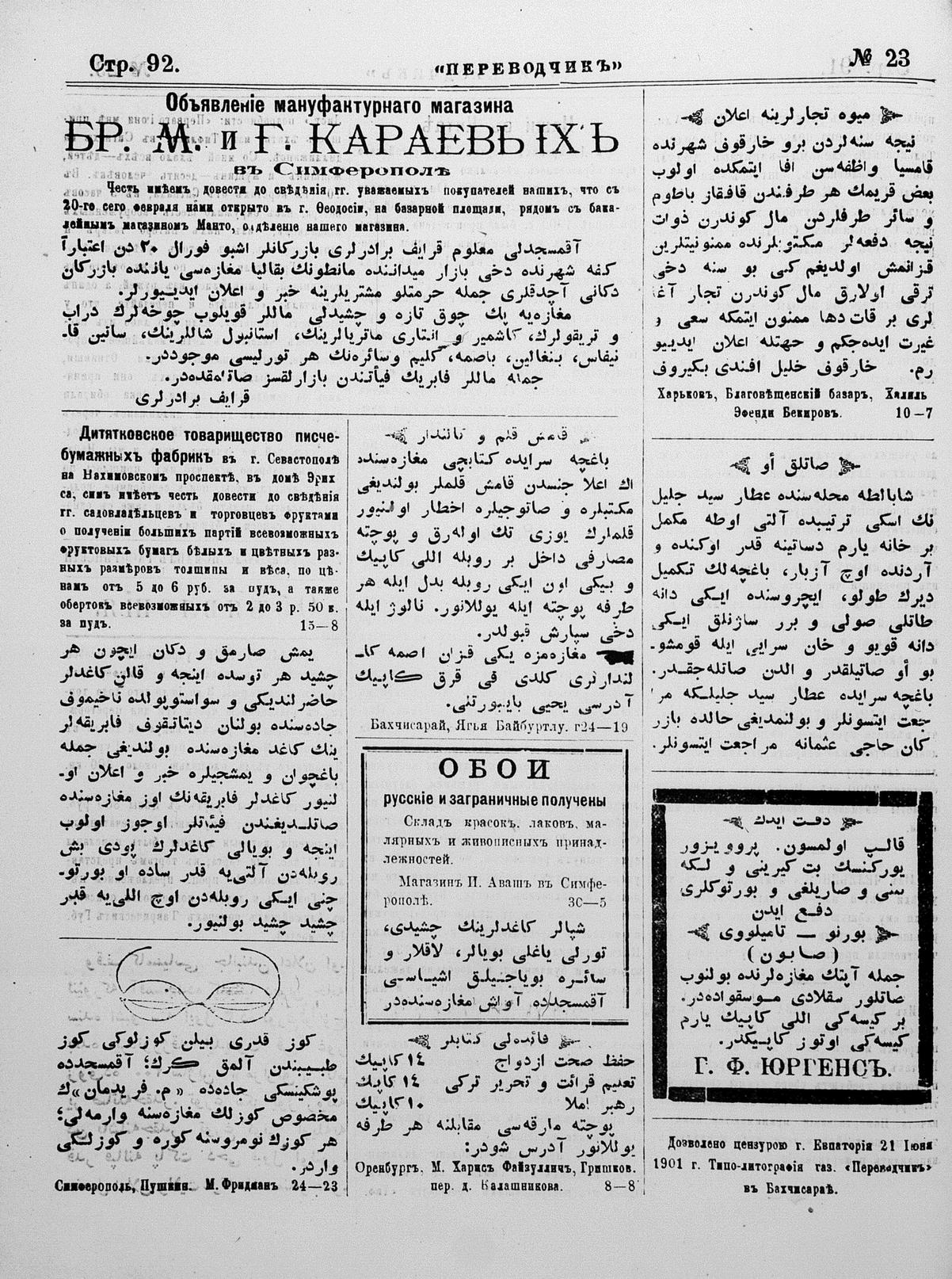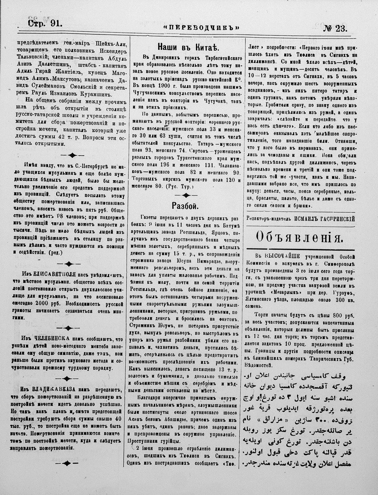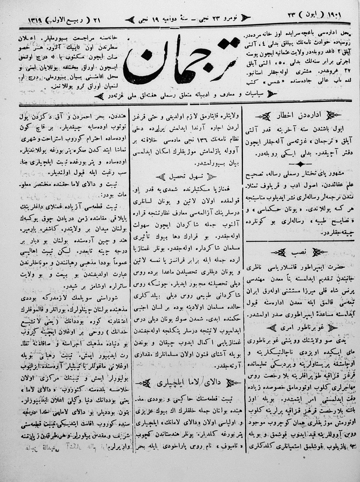 Tercüman, 23 June 1901 Year 19 No 23