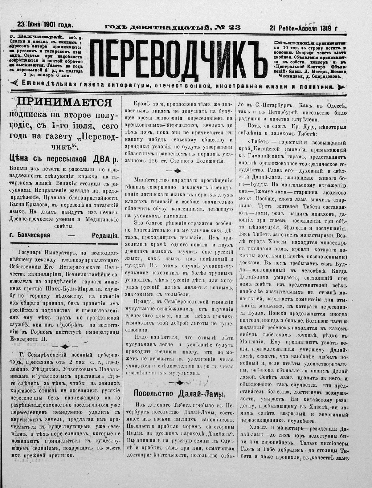 Turkish-Russian newspaper published in Crimea by İsmail Gaspıralı.