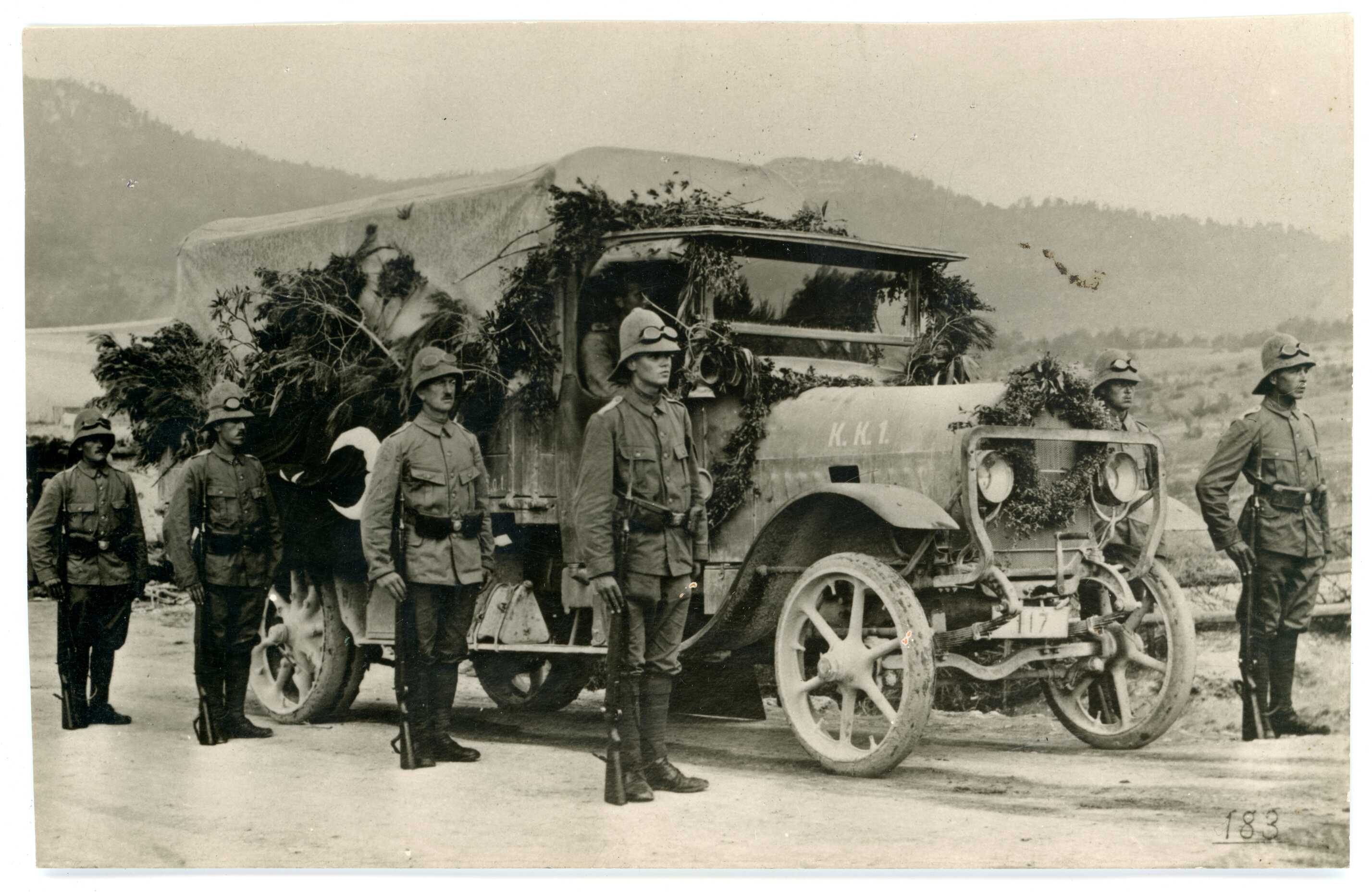 Osmanlı askeri konvoyundan bir kamyon ve askerler