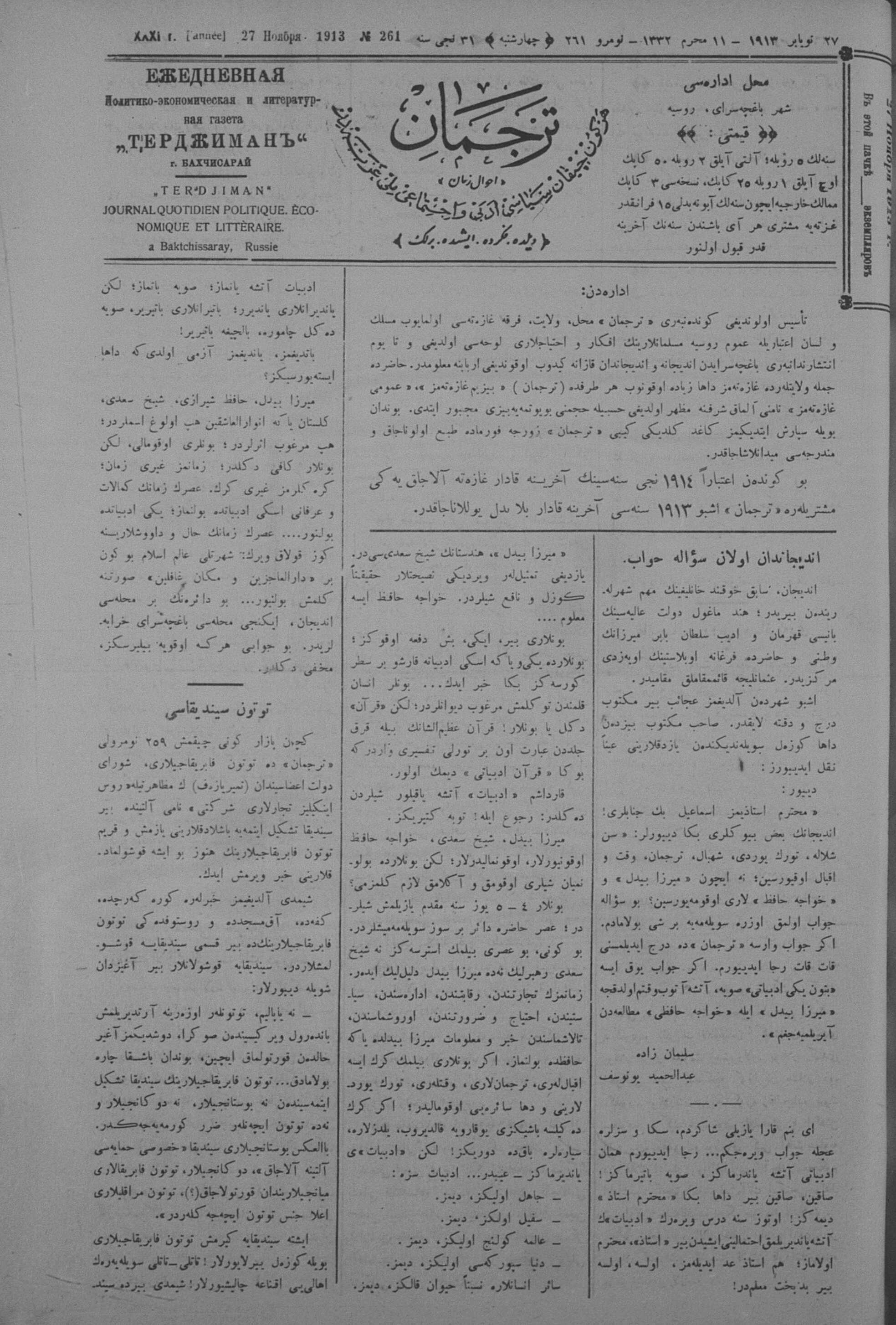 Turkish-Russian newspaper published in Crimea by İsmail Gaspıralı.