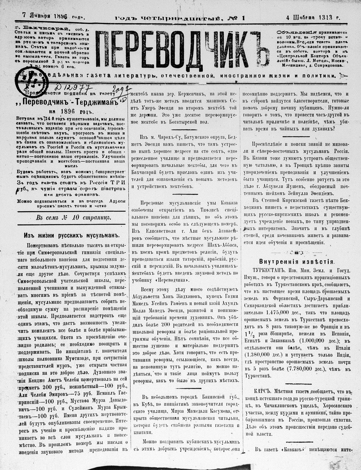 Turkish-Russian newspaper published in Crimea by İsmail Gaspıralı.