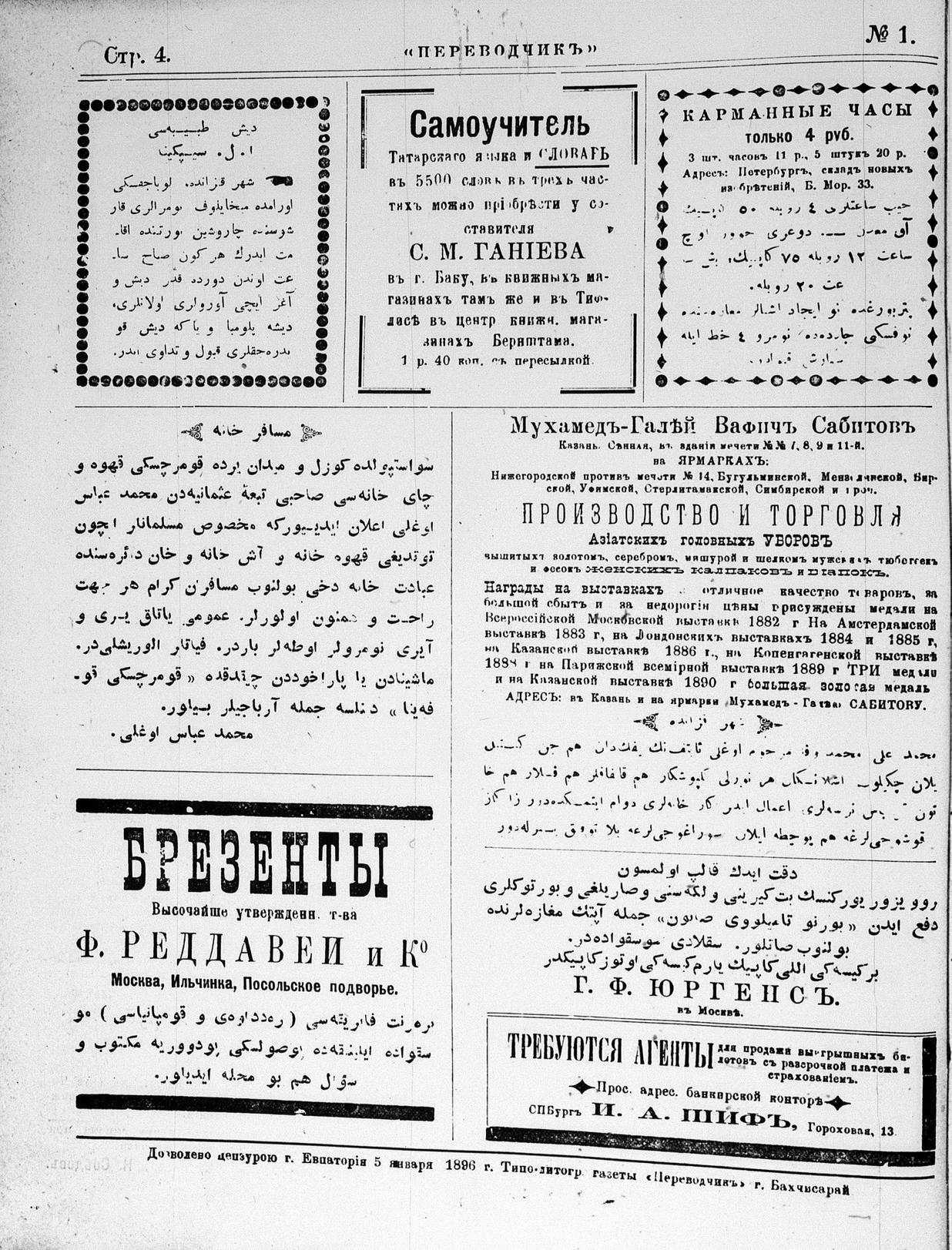 Different spellings of Tercüman: Terdzhiman, Terjuman, Perevodçik and Terjiman.