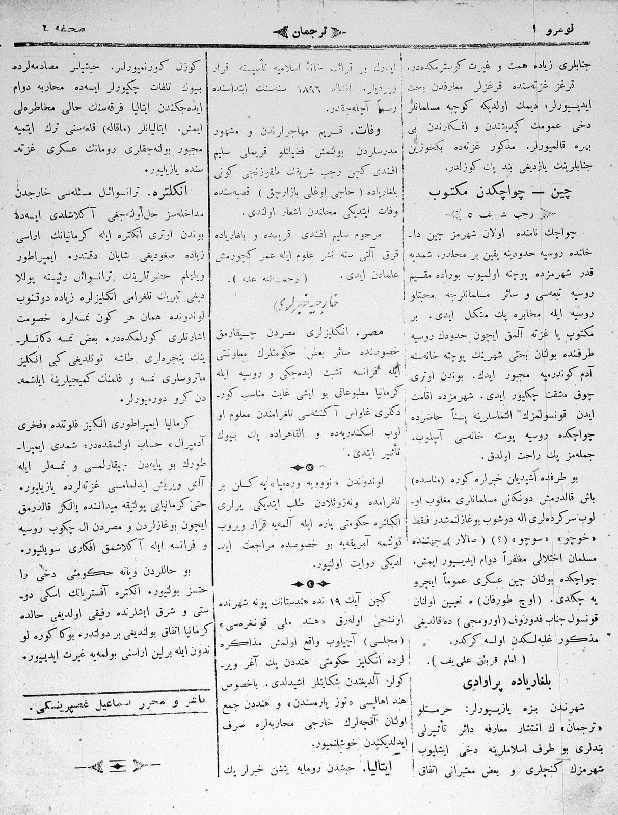 The name of the newspaper changed to Tercüman-ı Ahval-i Zaman in 1905. In 1909, it started to be published under its first name, Tercüman.