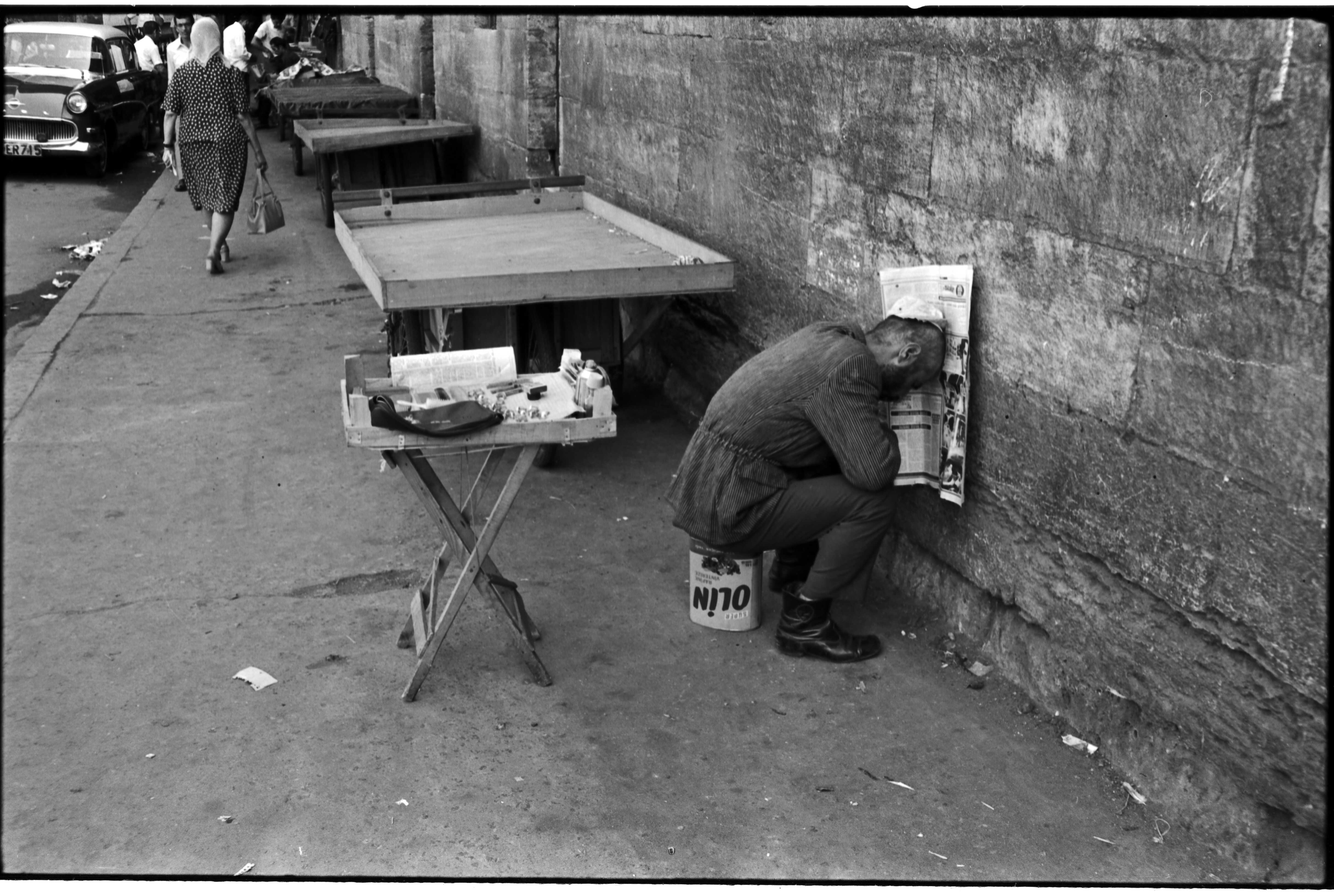 Yeni Camii duvarı önünde uyuyan bir seyyar satıcı