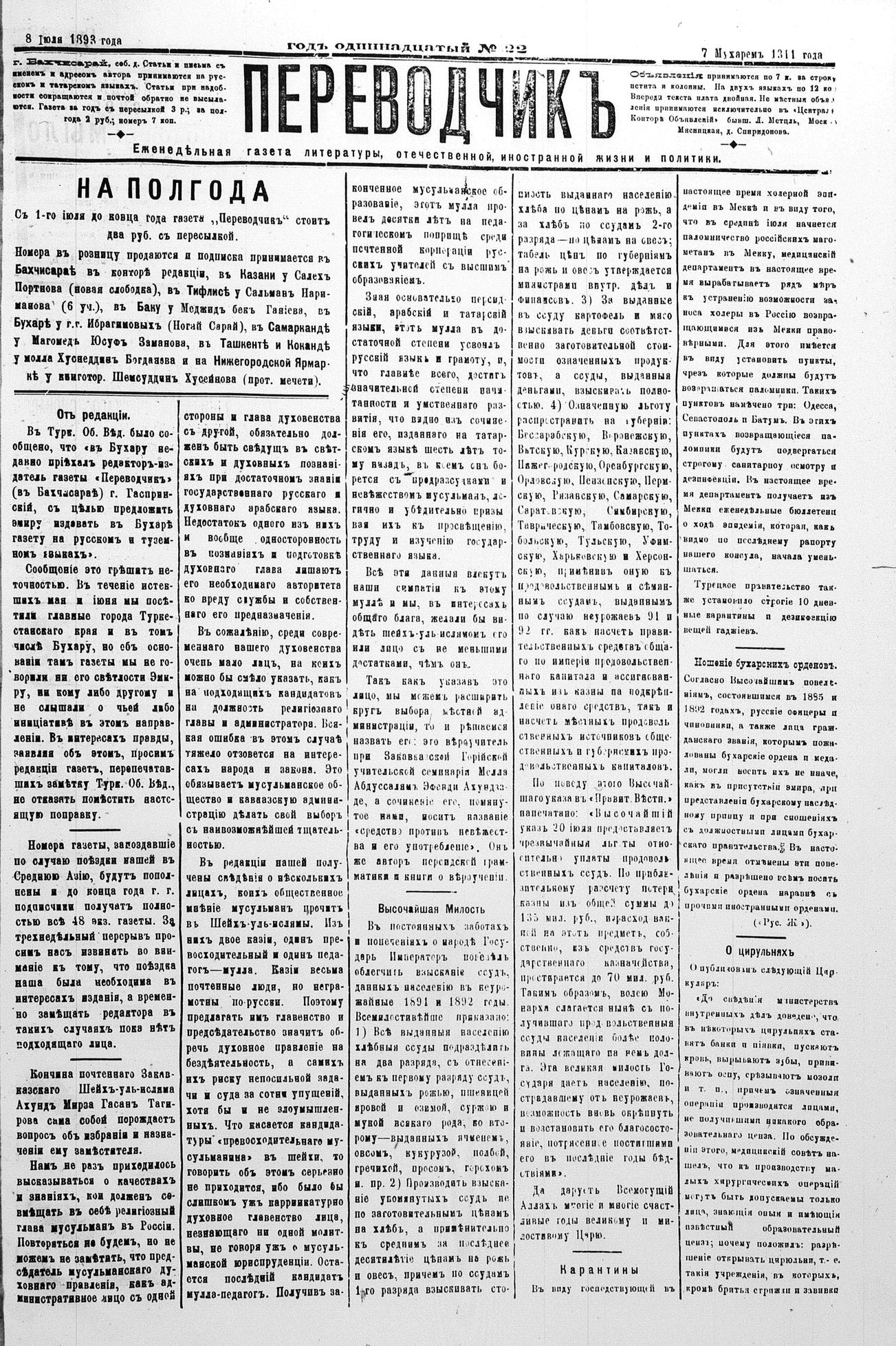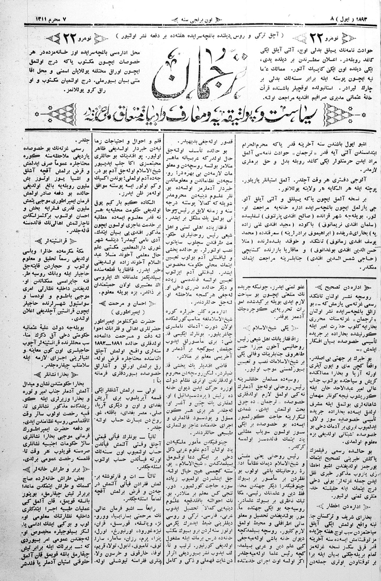 Tercüman, 08 July 1893 Year 11 No 22